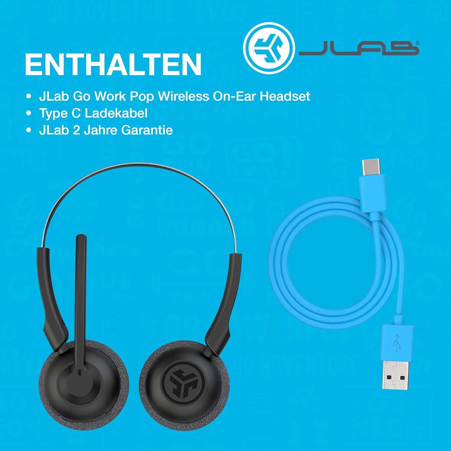 - PC-HEADSET ENTHÄLT: GO Work Pop kabelloses On-Ear-Büro- oder Gaming-Headset mit Mikrofon, Typ-C-Ladekabel, zwei Jahre JLab-Garantie. Perfekt für den Büroalltag! Geniessen Sie klare Anrufe und Videoanrufe mit Zoom