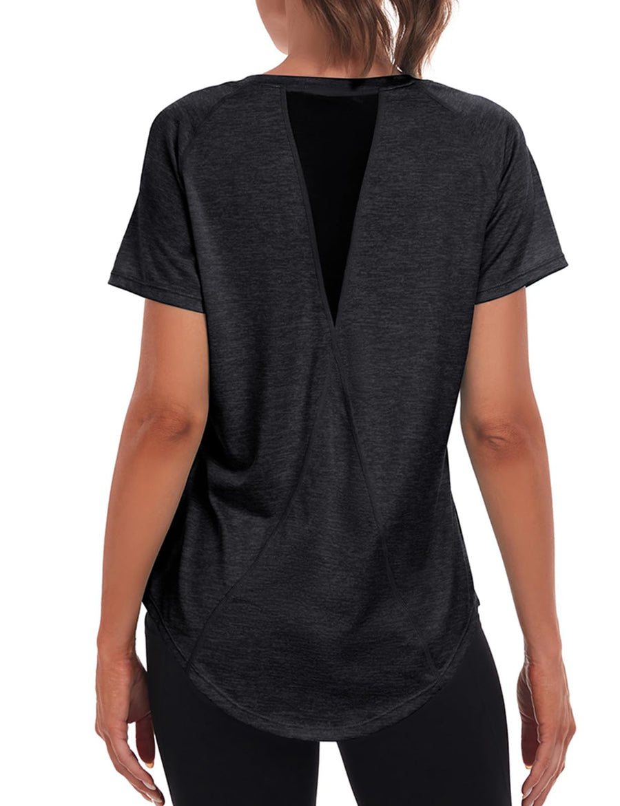 - Mesh-Rücken - einzigartiges Design Kurzer Ausschnitt, Rundhalsausschnitt, schnell trocknende Oberteile, feuchtigkeitsableitende T-Shirts. Das Mesh-Nähte-Rückendesign passt perfekt zu Träger-BHs mit gekreuztem Rücken, atmungsaktiv, sexy und stilvoll.