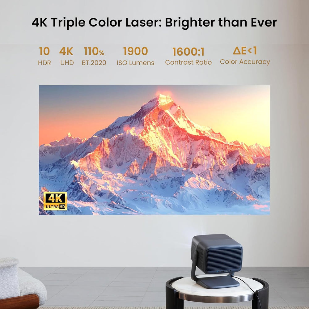 - 【4K Beamer mit MALC Triple Laser】: Ausgestattet mit Triple Laser Optik auf Kinoniveau, 4K Auflösung und Helligkeit von 2200 CVIA Lumen, bietet N1 Ultra eine überragende Bildqualität in jeder Lichtumgebung. JMGO smarter Projektor präsentiert ein
