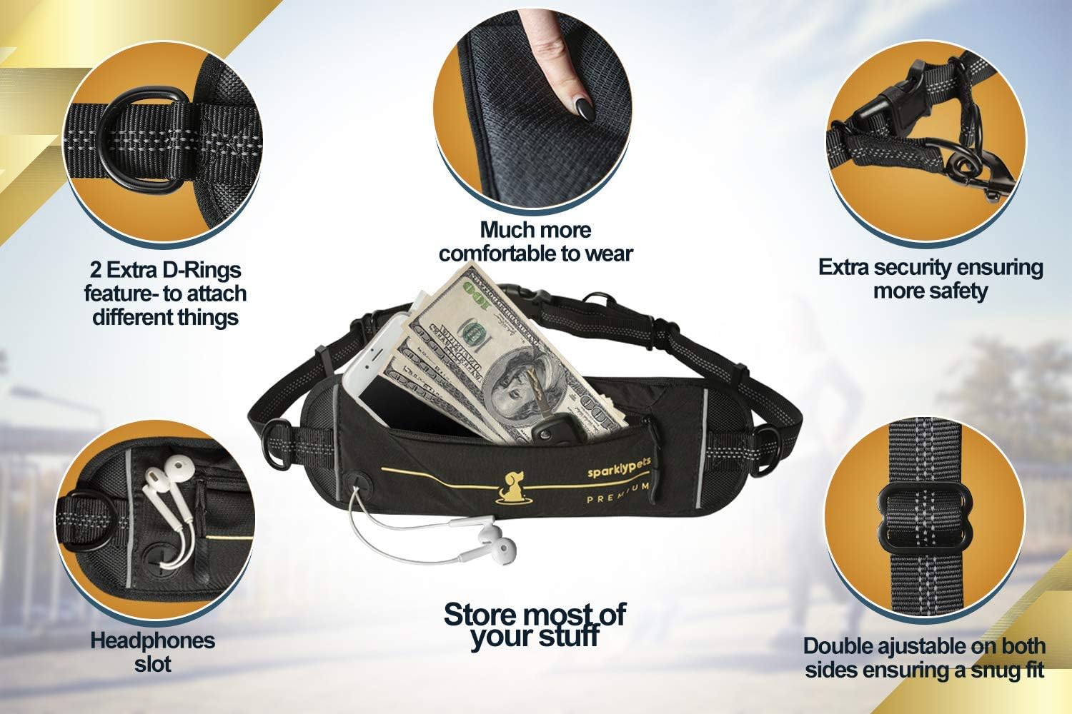 - Sicherheitsclips am Gurt - Im Gegensatz zu anderen freihändigen Leinen, bei denen sich Ihr Hund durch das Lösen des Gurtes befreien kann, verfügt unsere Profi-Leine über einen Stützmechanismus mit 2 Edelstahlverschlüssen, die die gesamte Spannung