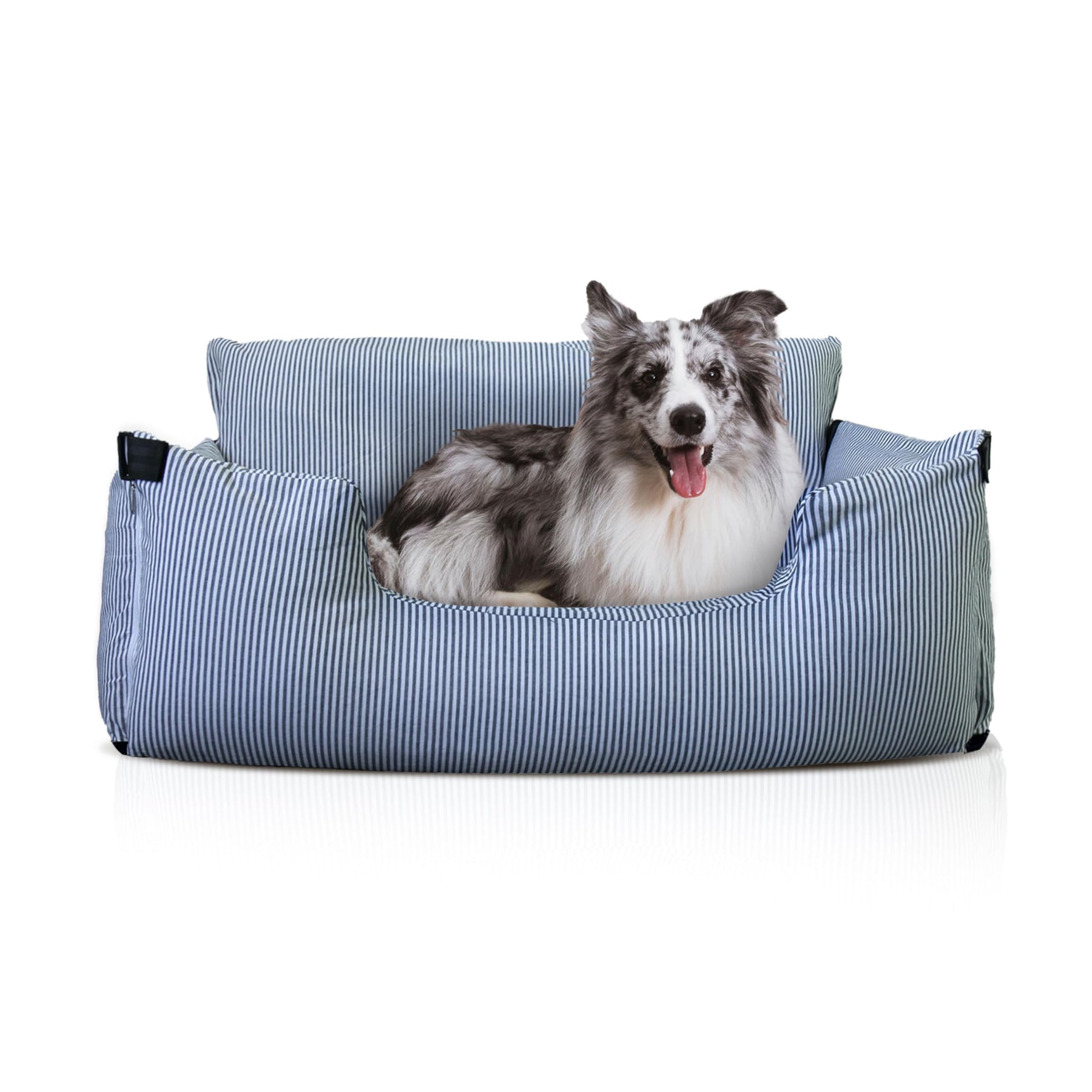 - 110*45*55cm Autositz für mittelgrosse Haustiere kann einfach installiert werden, zwei schwarze Nylon-Griffbänder der Rücksitz-Oberseite hängen. Zwei nicht verstellbare lange Griffgurte können fest ein Haustiernestbett für den Hund auf dem Rücksitz