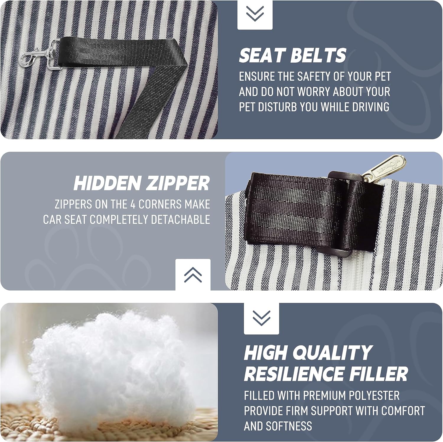 - Das abnehmbare und waschbare Design, öffnen Sie den inneren unteren Reissverschluss bei der Reinigung, PP-Baumwolle ist leicht herauszunehmen, und legen Sie den Hundesitzbezug zur Reinigung in die Waschmaschine. Sie können auch einen Staubsauger