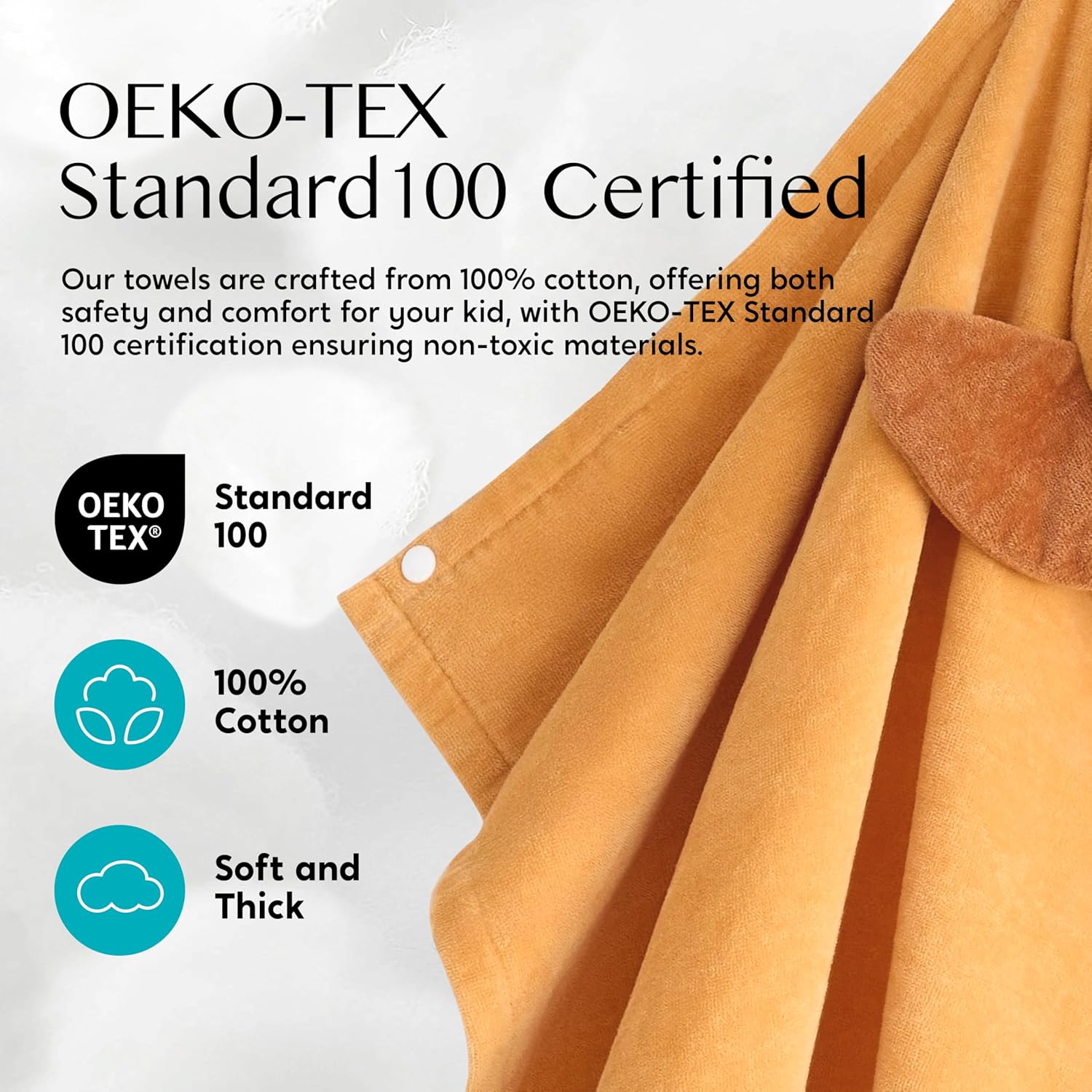 - Umweltfreundliches und unbedenkliches Material: 100 % Baumwolle – dicker, weicher und saugfähiger als andere Kleinkinderbadetücher. Alle unsere Kleinkinderhandtücher sind nachStandard 100 zertifiziert, sodass Sie sicher sein können, dass
