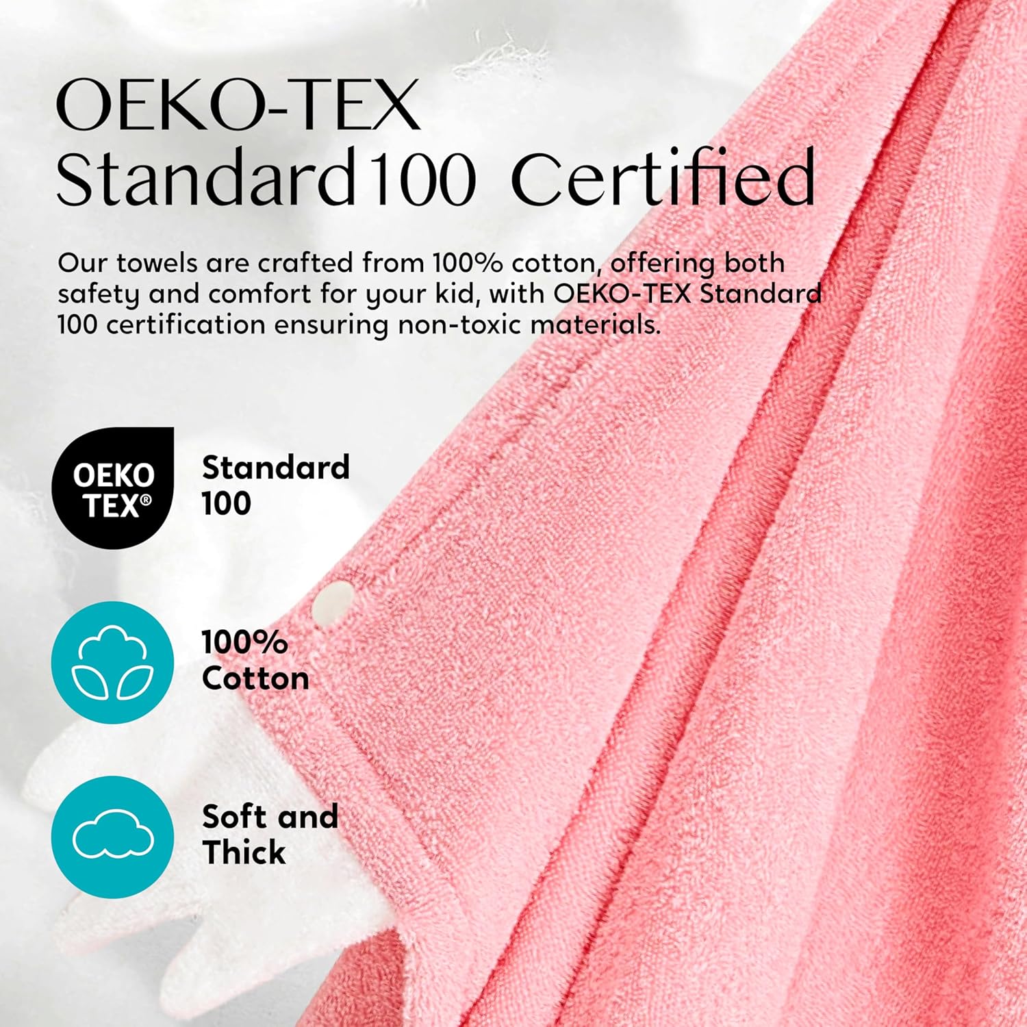 - UMWELTFREUNDLICHES UND UNGEFÄHRLICHES MATERIAL: 100% Baumwolle, dicker, weicher und saugfähiger als andere Badetücher für Kleinkinder. Alle unsere Handtücher für Kleinkinder sind nachStandard 100 zertifiziert, was bedeutet, dass Sie