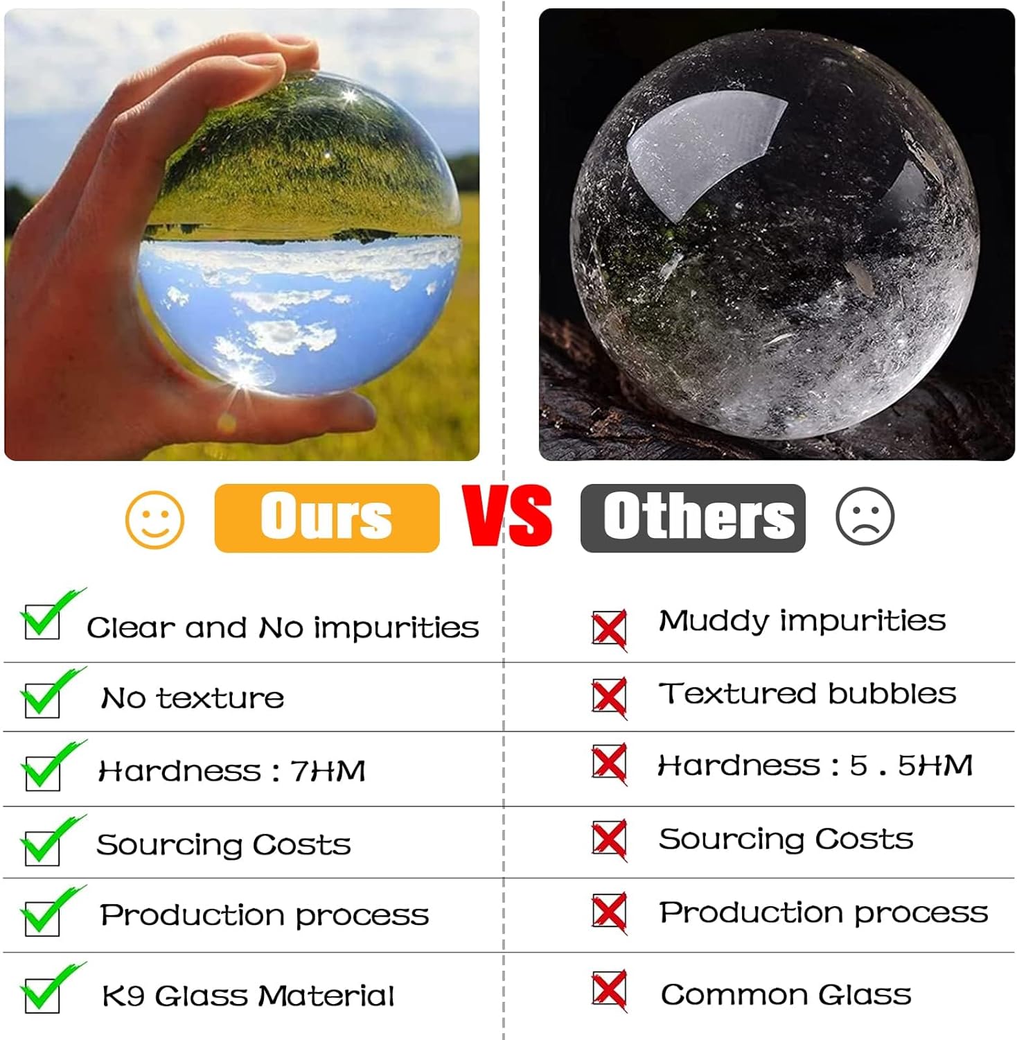 - Hochwertige Kristallkugel: Die Kristallkugel besteht aus K9-Kristall, der ausgezeichnete Durchlässigkeit, Brechungswirkung, Härte und Konsistenz hat. Deshalb sind unsere Kristallkugeln so transparent und brechen nicht, wenn Sie sie fallen lassen. Das