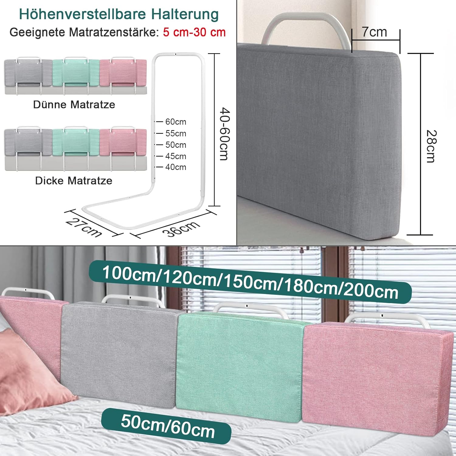 - Höhenverstellbares Bettschutzgitter: Dieses Bettgitter verfügt über 5 Verstellbereiche und ist von 40 bis 60 cm höhenverstellbar für unterschiedliche Matratzenstärken. Die Länge des Bettgitters zum Schutz des Bettes kann frei kombiniert werden. Je