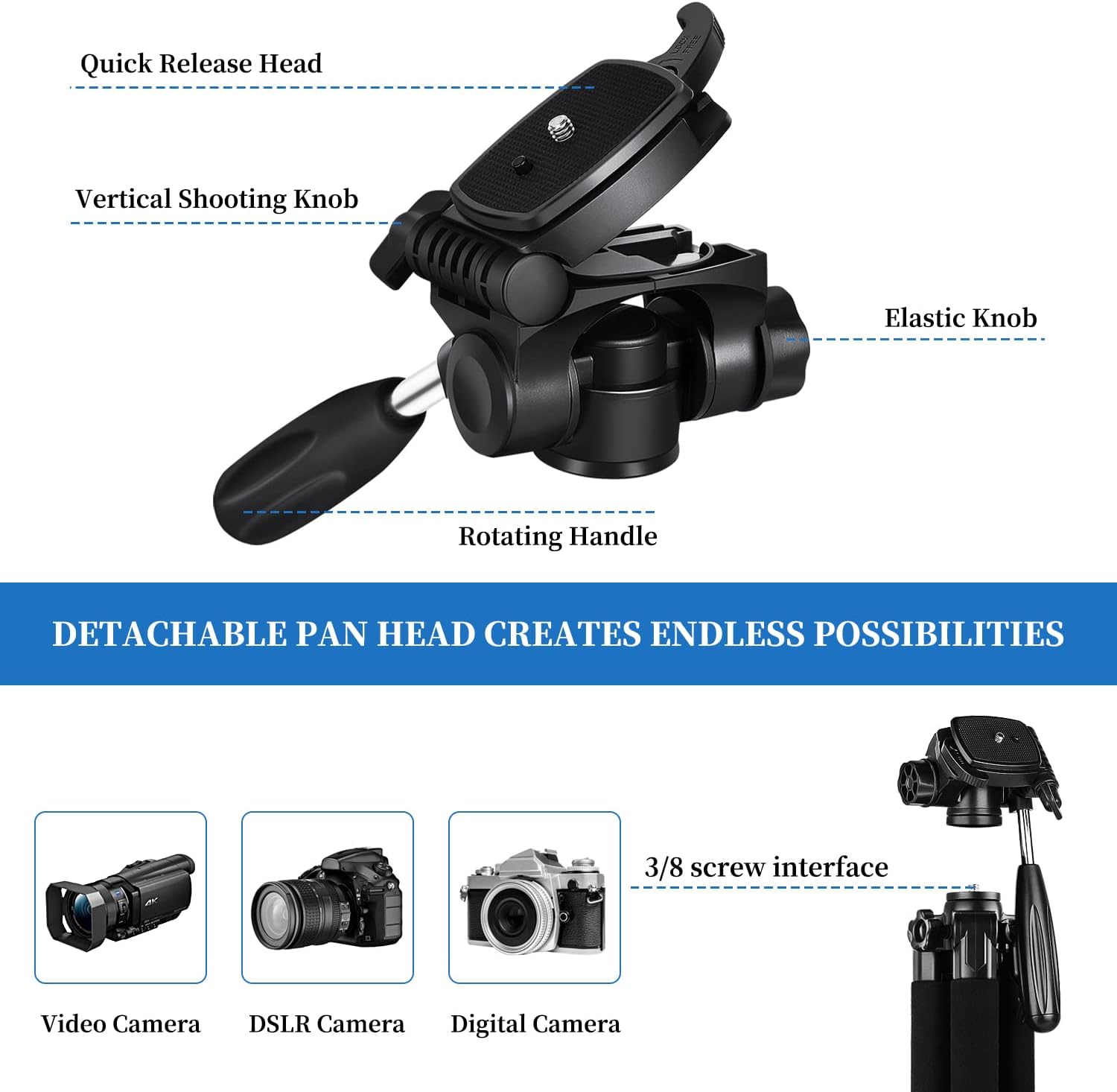 - 【ABNEHMBARER 3-WEGE-SCHWENKKOPF】 Um 360° geschwenkt, um 90° nach hinten oder vorne geneigt, bietet der Stativkopf ein reibungsloses Betriebserlebnis ohne blinde Flecken in Ihrem Sichtfeld und ändert einfach die Richtung, um atemberaubende Fotos