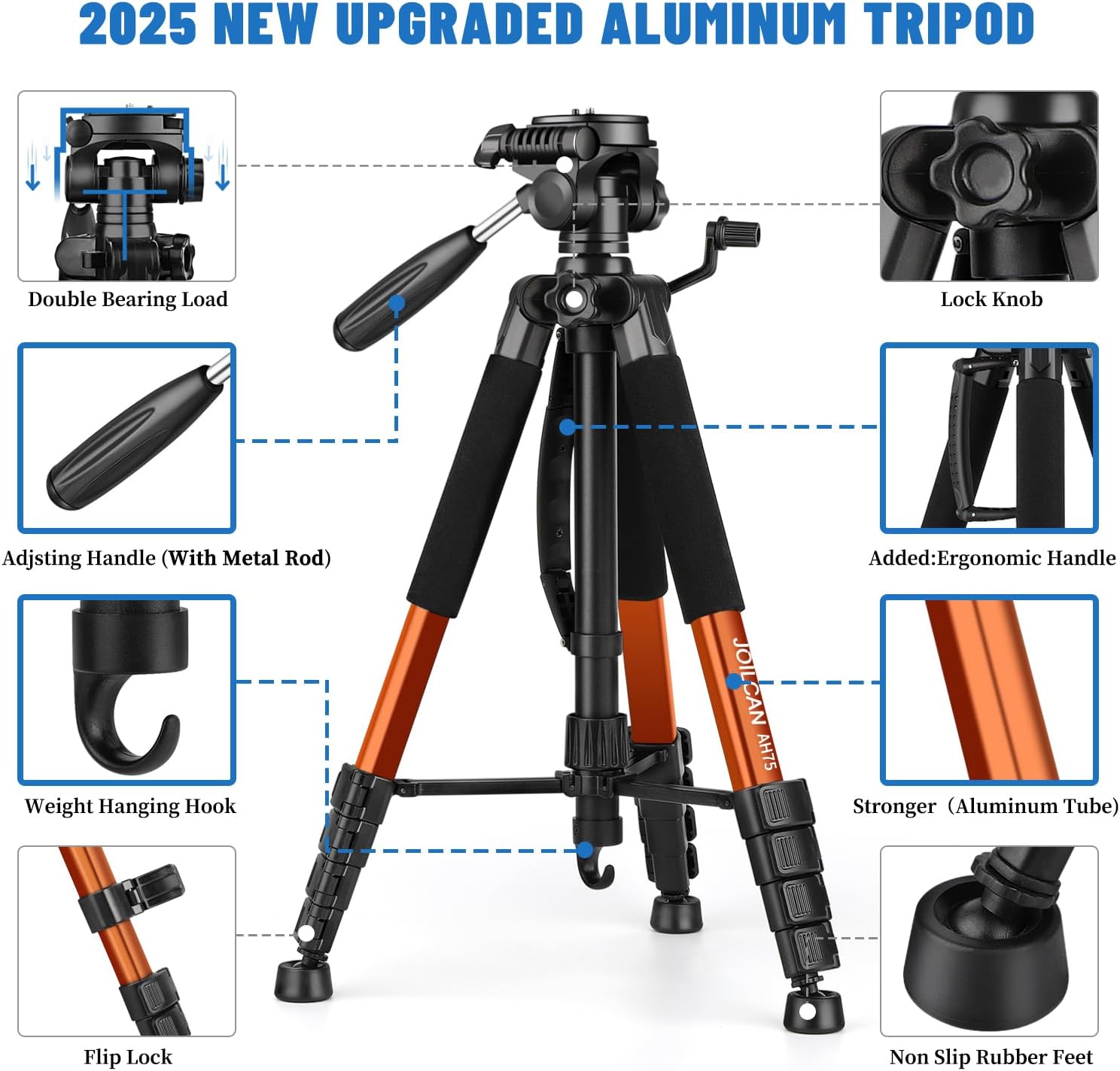 - 【BREITE KOMPATIBILITÄT】 Dieses JOILCAN-Stativ mit Standard-1/4-Zoll-Schraube ist für alle DSLR-Kameras, Ipads, Webcams, Spektive, Ferngläser und Mobiltelefone geeignet. Die um 360 Grad drehbare Handyhalterung ist im Lieferumfang enthalten und