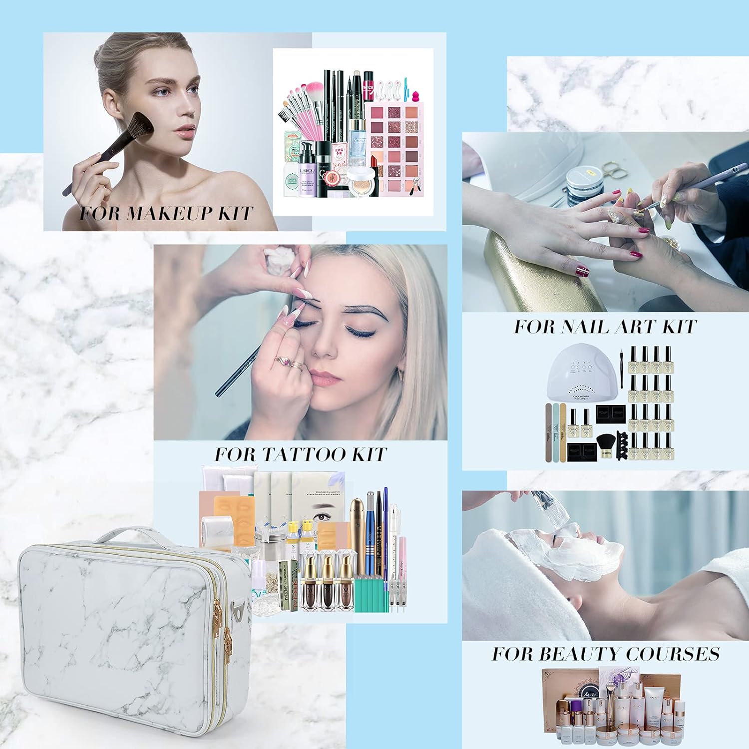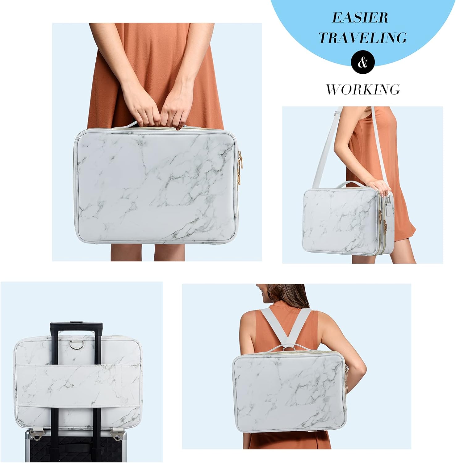 - 4 Möglichkeiten zu tragen : diese Kosmetiktasche gibt es einen verstellbaren Schlutergurt , einen angenehmen Handgriff und ein Band auf Rückseite . Deshalb können Sie diese Kosmetiktasche als Handtasche, Rucksack , Schultertasche. Und Sie können auch