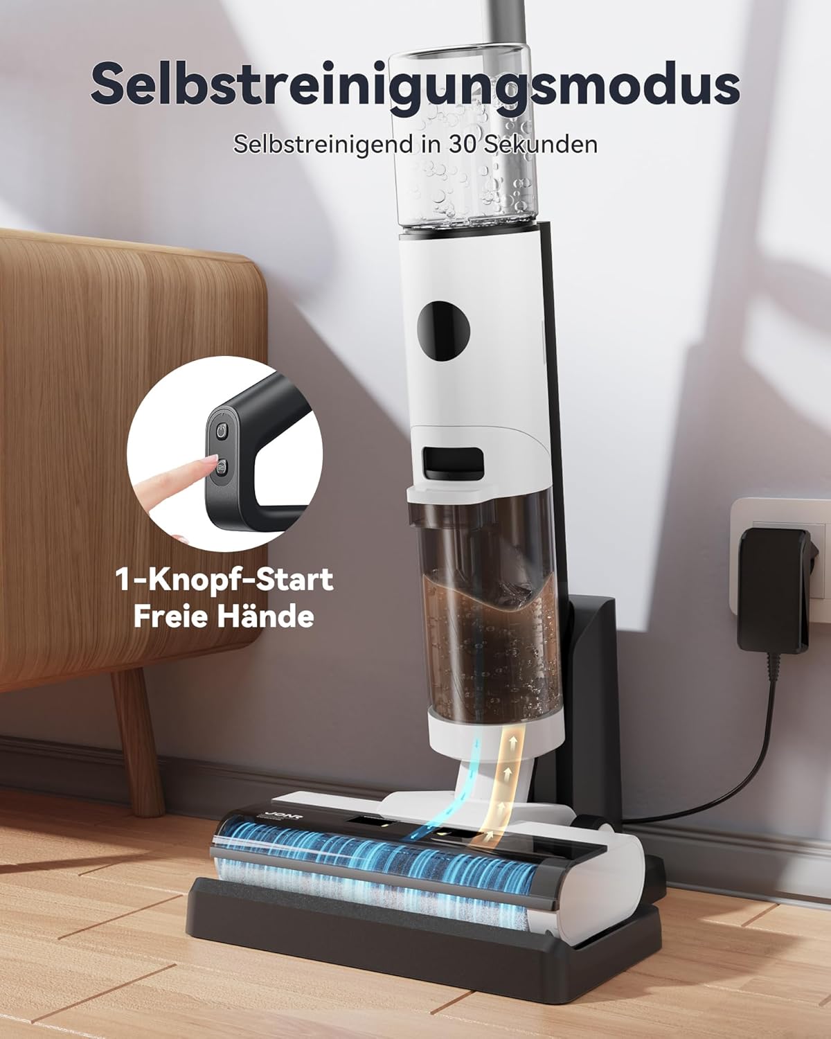 - 【Lange Laufzeit】Dank intelligent optimierter Saug- und Akkuleistung können Sie bis zu 30 Minuten lang ununterbrochen reinigen. Grossvolumige Tanks (850 ml Frischwassertank und 450 ml Schmutzwassertank) ermöglichen eine längere Reinigung ohne