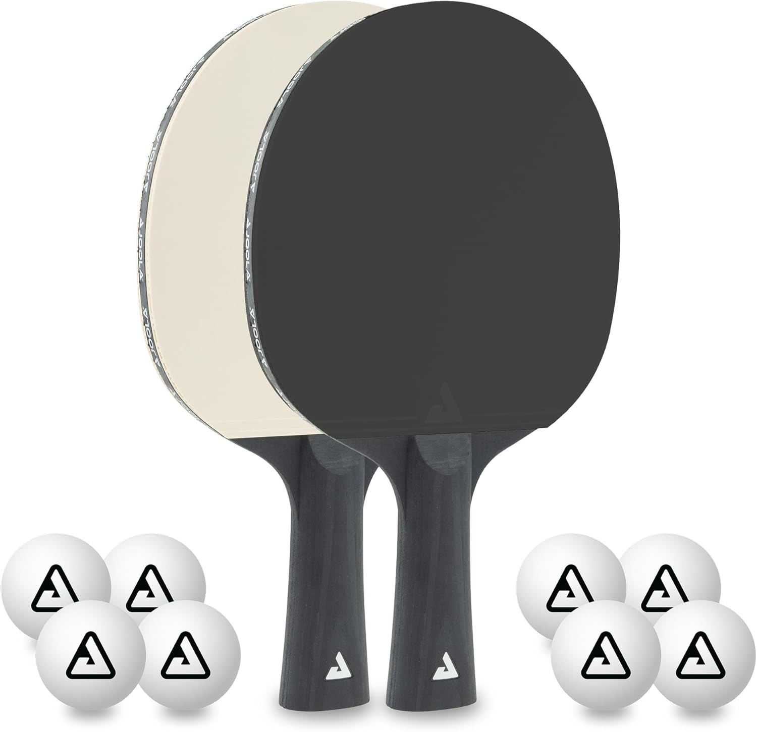 • Lieferumfang - 10-teiliges Tischtennisset bestehend aus: 2 Tischtennisschläger JOOLA BLACK + WHITE und 8 zweifarbigen (Schwaz/weiss) Tischtennisbälle.