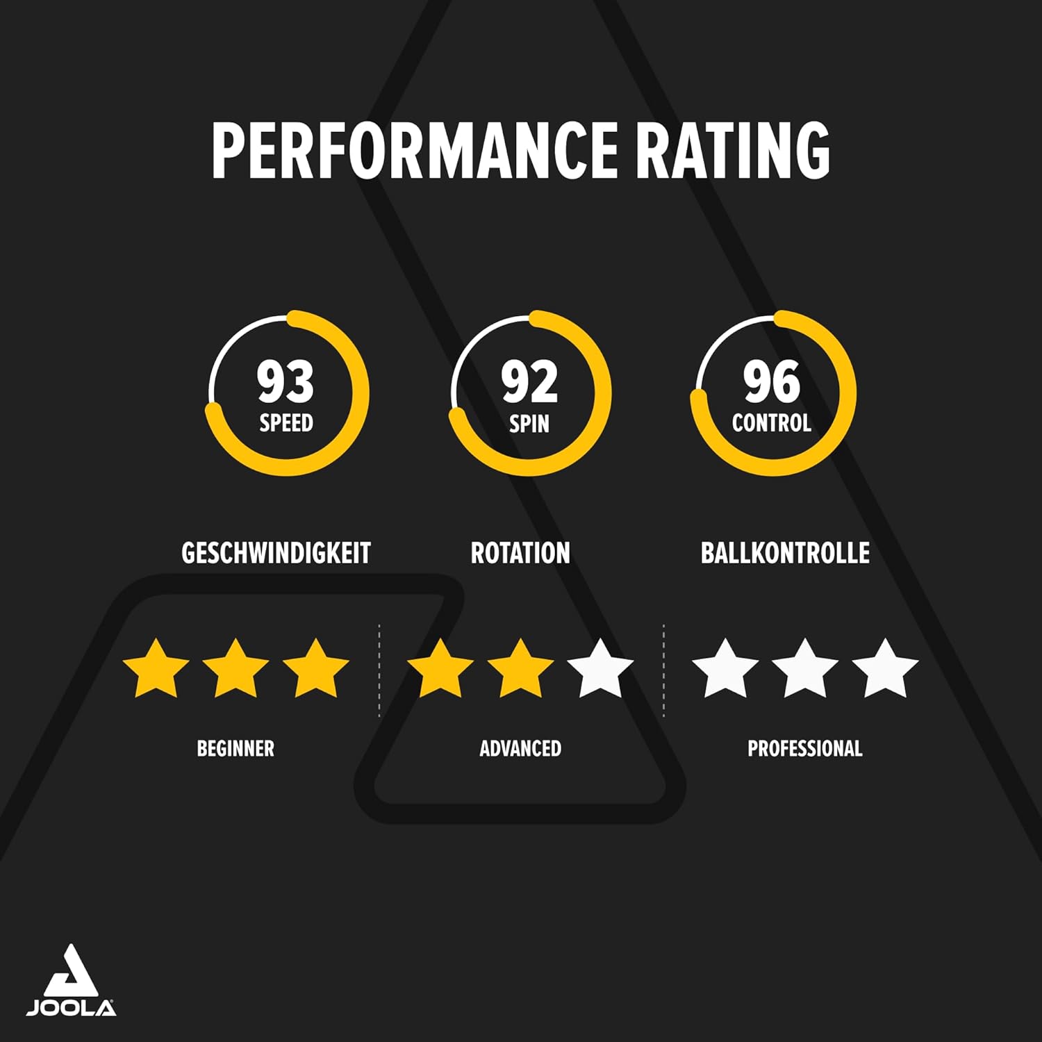 - PERFORMANCE RATING (SKALA 0-120): Speed: 93 - Spin: 92 - Kontrolle: 90 Der Tischtennisschlaeger JOOLA ROSSKOPF JUNIOR PRO ist vormontiert und ideal für Kids