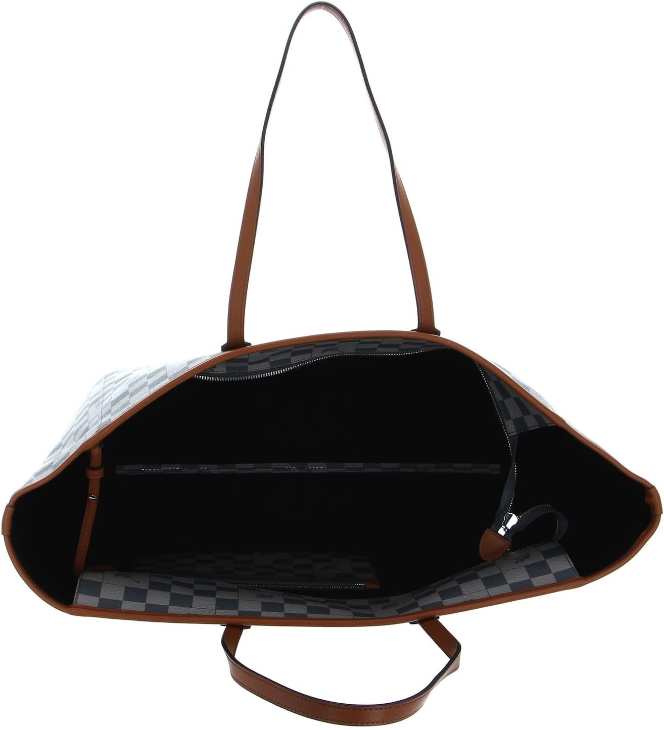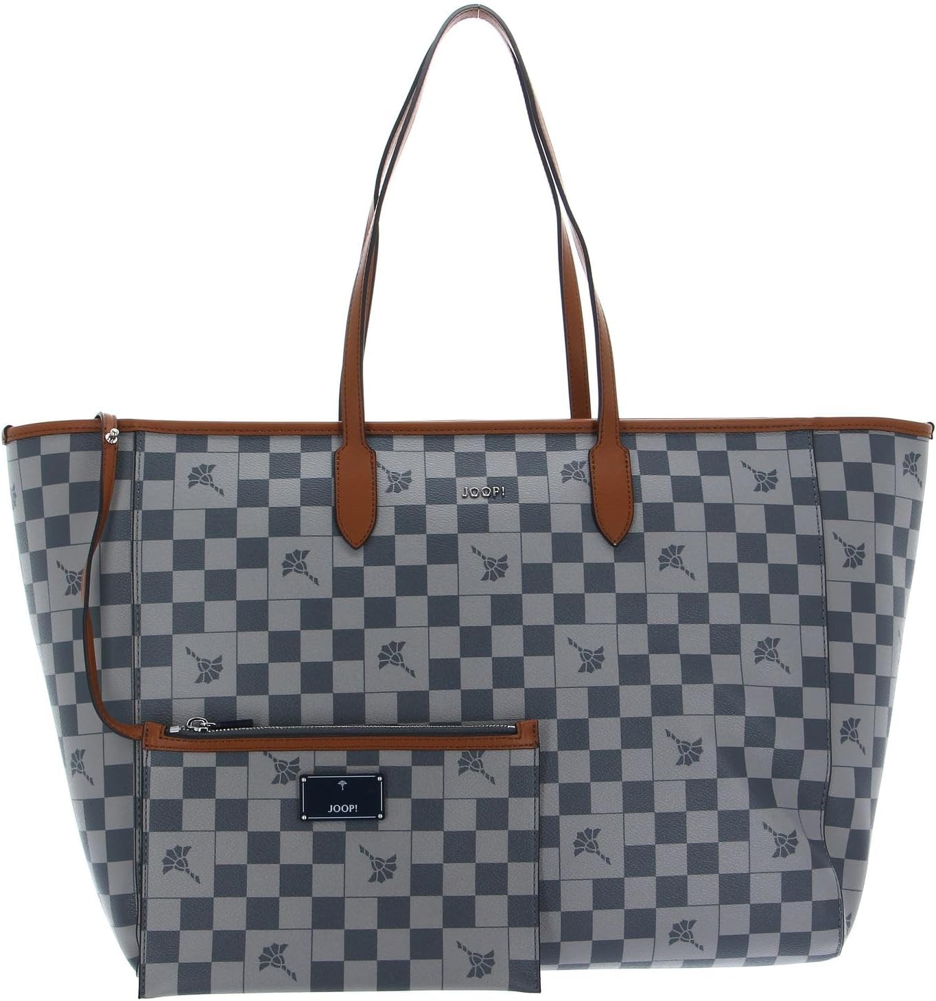 PRODUKTBESCHREIBUNGEN JOOP! Schultertasche mit passender Kosmetiktasche Lieferumfang JOOP! Set: o Schultertasche mit Etikett und Anhänger o Kosmetiktasche mit Etikett Daten Schultertasche: o Masse oben: Breite ca. 58 cm, Höhe ca. 32 cm, Tiefe ca. 7 cm o Masse unten: Breite ca. 40 cm, Höhe ca. 32 cm, Tiefe ca. 18 cm o Gewicht: ca. 865 g o Farbe: Castlerock (Grau) o 2 Henkel: ca. 57 cm o Material: Polyurethan, innen Baumwolle o Lieferumfang: JOOP! Schultertasche mit Etikett, Anhänger Ausstattung Schultertasche: o Schultertasche wird mit Zipper geschlossen o Im Hauptfach 1 Befestigung o Mit verstärktem Boden ausgestattet o Besitzt geräumiges Hauptfach o Ist gross genug für DIN A4 o Ist standfest o Das JOOP! Logo ist gut sichtbar eingearbeitet Daten Kosmetiktasche: o Masse: Breite ca. 22 cm, Höhe ca. 15 cm, Tiefe ca. 0,5 cm o Gewicht: ca. 130 g o Farbe: Castlerock (Grau) o Material: Polyurethan, Baumwolle o Lieferumfang: JOOP! Kosmetiktasche mit Etikett Ausstattung Kosmetiktasche: o Kosmetiktasche wird mit Zipper geschlossen o Auf der linken Seite 1 Befestigung o Besitzt geräumiges Hauptfach o Das JOOP! Logo ist gut sichtbar eingearbeitet JOOP! Cortina Piazza Carmen Shopper XLHZ - Die Schultertasche mit viel Stauraum Ob für einen gemütlichen Stadtbummel oder einen Wochenendtrip. Mit der JOOP! Cortina Piazza Carmen Shopper XLHZ sind Sie bestens ausgestattet. Im geräumigen Hauptfach können Sie all ihre Utensilien und Kleinigkeiten, die Sie im Alltag benötigen, bestens verstauen. Zudem befindet sich im Inneren eine herausnehmbare Kosmetiktasche im selben Design. Mit modernem Logo-Muster sind Sie immer voll im Trend unterwegs und werden jede Menge Mehr
