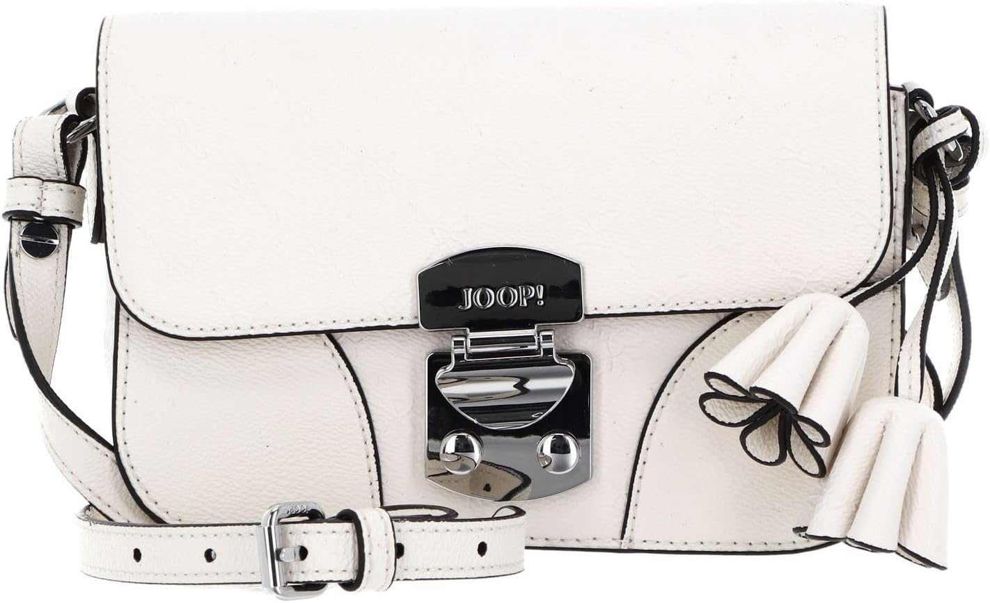 PRODUKTBESCHREIBUNGEN JOOP! Umhängetasche mit schickem Anhänger Daten Umhängetasche: o Masse: Breite ca. 20 cm, Höhe ca. 14 cm, Tiefe ca. 7 cm o Gewicht: ca. 530 g o Farbe: Cream-White (Beige) o 1 Schulterriemen, verstellbar: ca. 120 cm - 130 cm o Material: Aussen Polyurethan, innen Baumwolle o Lieferumfang: JOOP! Umhängetasche mit Etikett, Anhänger Ausstattung Umhängetasche: o Umhängetasche wird mit Überschlagklappe und Schnappverschluss geschlossen o Im Hauptfach 1 Zipperfach o Auf der Vorderseite und Rückseite 1 Einschubfach o Mit verstärktem Boden ausgestattet o Besitzt geräumiges Hauptfach o Das JOOP! Logo ist gut sichtbar eingearbeitet JOOP! Cortina Stampa Uma Shoulderbag XSHF - Die Umhängetasche für jeden Anlass Mit dieser JOOP! Umhängetasche haben Sie einen schicken und modischen Begleiter, welcher Ihnen treu an der Seite steht und Ihrem Outfit den letzten Touch verleiht gefunden. Das moderne Design der Umhängetasche und der zusätzliche Anhänger sind das absolute Highlight. Trotz der kompakten Grösse haben Sie ausreichend Stauraum, um die wichtigsten Ihrer Sachen für einen gelungenen Abend zu verstauen. Diese JOOP! Cortina Stampa Uma Shoulderbag XSHF ermöglicht Ihnen einen glamourösen Auftritt, der im Gedächtnis bleibt!