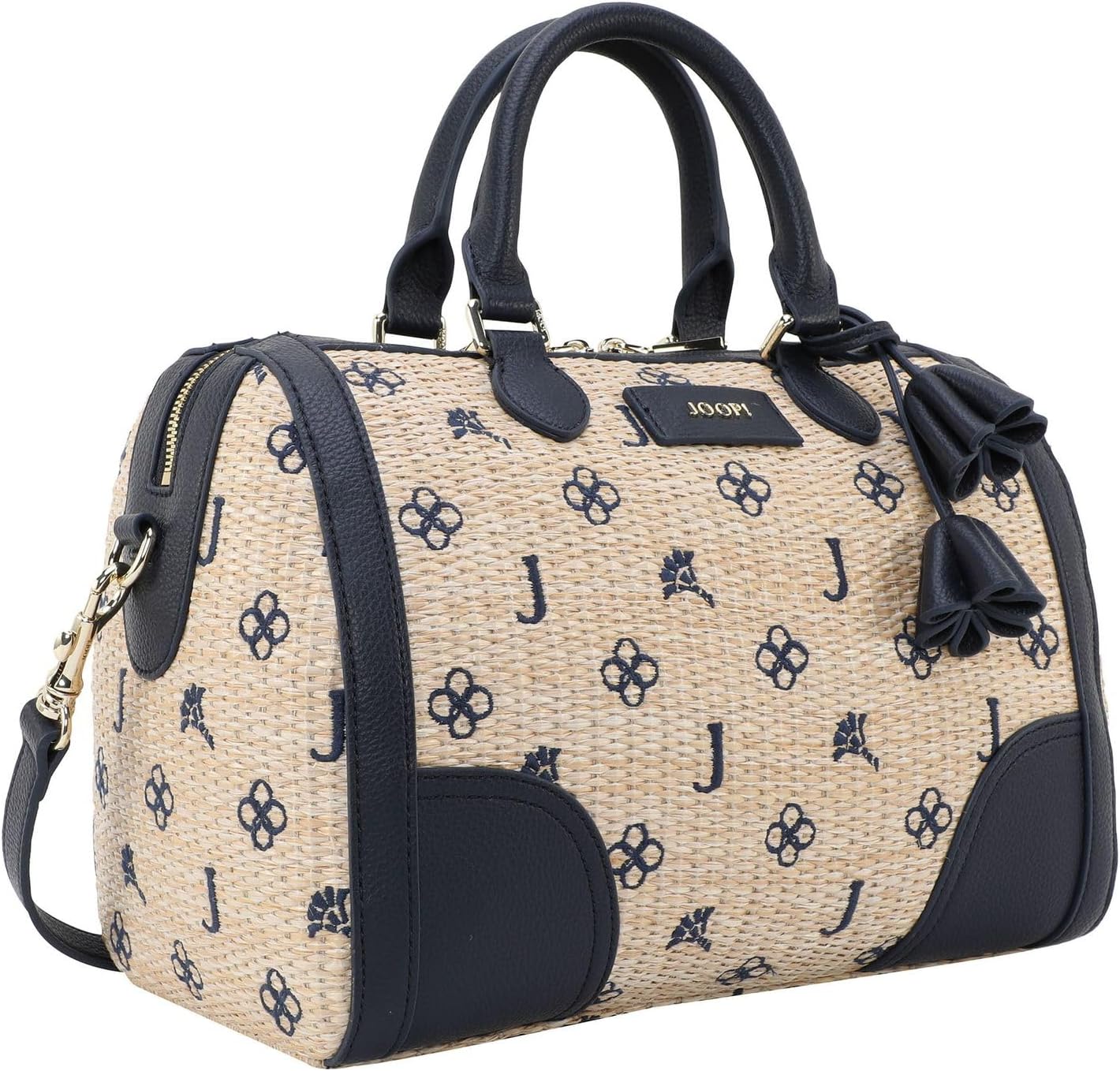 PRODUKTBESCHREIBUNGEN JOOP! Handtasche mit verstärktem Boden Daten Handtasche: o Masse: Breite ca. 26,5 cm, Höhe ca. 22 cm, Tiefe ca. 10,5 cm o Gewicht: ca. 675 g o Farbe: Dark Blue (beige / dunkelblau) o 2 Henkel verstärkt: ca. 32 cm o 1 Schulterriemen abnehmbar, verstellbar: ca. 128 cm - 138 cm o Material: Aussen Stroh, innen Baumwolle o Lieferumfang: JOOP! Handtasche mit Etikett, 1 x Schulterriemen Ausstattung Handtasche: o Handtasche wird mit Zipper geschlossen o Im Hauptfach 1 Einschubfach und 1 Zipperfach o Mit verstärktem Boden ausgestattet o Besitzt geräumiges Hauptfach o Ist standfest o Das JOOP! Logo ist gut sichtbar eingearbeitet JOOP! Tessere Aurora Hand Bag S - Eine Handtasche für jeglichen Anlass Für diese schicke JOOP! Tasche spricht vor allem ihre hochwertige Qualität. Das schlichte Design der Handtasche wird mit dem Logo-Muster perfekt aufgewertet und passt somit zu jedem Outfit. Zudem kann sie sowohl als Handtasche als auch als Umhängetasche getragen werden. Die JOOP! Tessere Aurora Hand Bag Handtasche S überzeugt ausserdem nicht nur mit ihrem modischen Design, sondern punktet auch in der Praxis.