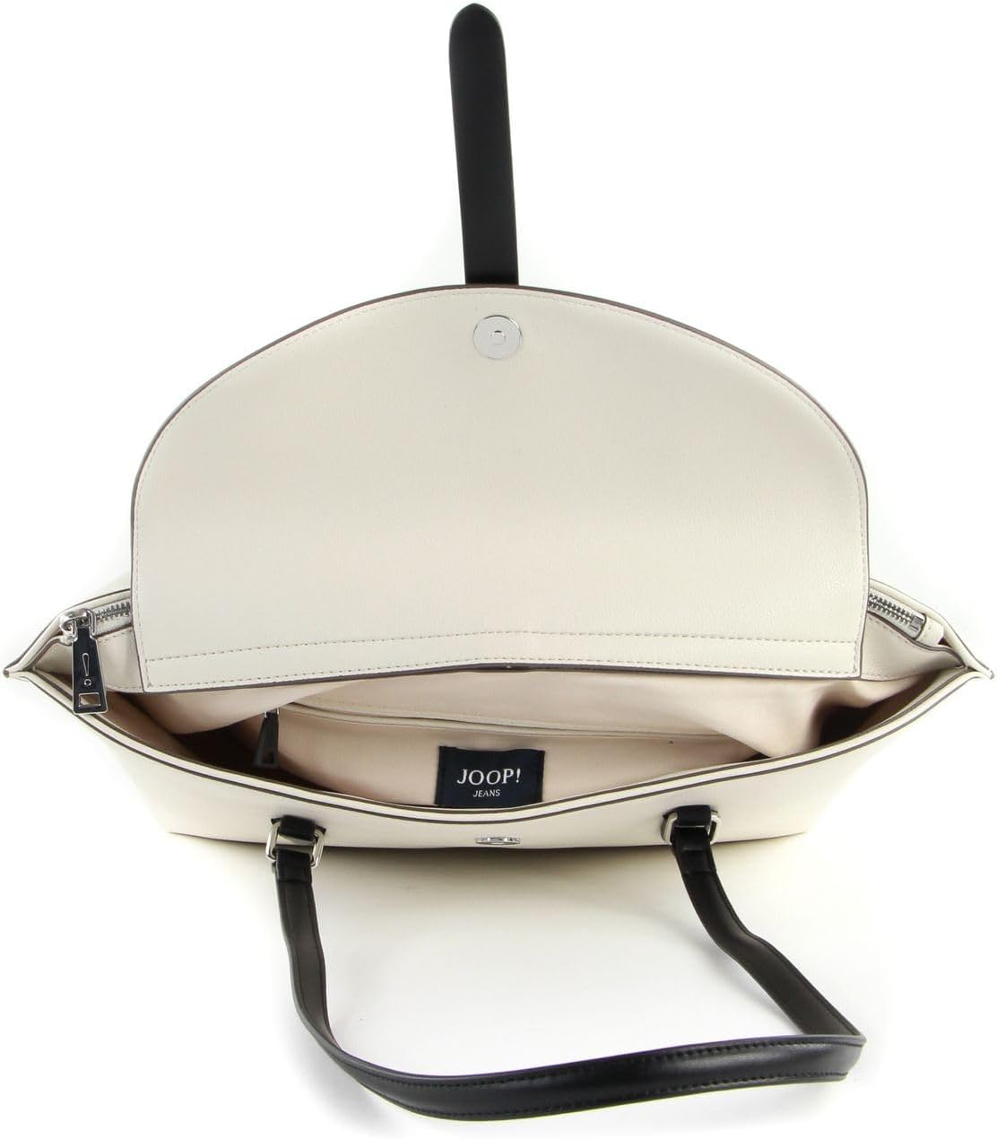 PRODUKTBESCHREIBUNGEN JOOP! Shopper in Schlangenleder-Optik Daten Shopper: o Masse oben: Breite ca. 43 cm, Höhe ca. 25 cm, Tiefe ca. 2 cm o Masse unten: Breite ca. 34 cm, Höhe ca. 25 cm, Tiefe ca. 16 cm o Gewicht: ca. 850 g o Farbe: Cream-White (Weiss / Beige / Schwarz) o 2 Henkel: ca. 75 cm o Material: Aussen 100% Polyurethan, innen 100% Baumwolle o Lieferumfang: JOOP! Shopper mit Etikett Ausstattung Shopper: o Shopper wird mit Überschlagklappe und Magnetverschluss geschlossen o Im Hauptfach 1 Zipperfach und 1 Einschubfach o Auf der Rückseite 1 Zipperfach o Mit verstärktem Boden und Schutzfüsschen ausgestattet o Ist gross genug für DIN A4 o Ist standfest o Besitzt geräumiges Hauptfach o Das JOOP! Logo ist gut sichtbar eingearbeitet JOOP! Mezza Luna Snake Rosalie Shopper LHF - Der praktische Shopper für den Alltag Dieser JOOP! Shopper erleichtert Ihren Alltag um einiges. Das trendige Design überzeugt wirklich jeden und verleiht Ihrem Outfit Eleganz und Stil. In dem geräumigen Hauptfach des JOOP! Mezza Luna Snake Rosalie Shopper LHF Shoppers können Sie wirklich all Ihre persönlichen Dinge und Einkäufe stylisch verstauen. Lässig über die Schulter gehängt können Sie Ihren neuen Alltagshelden stolz in der Einkaufsstrasse präsentieren.