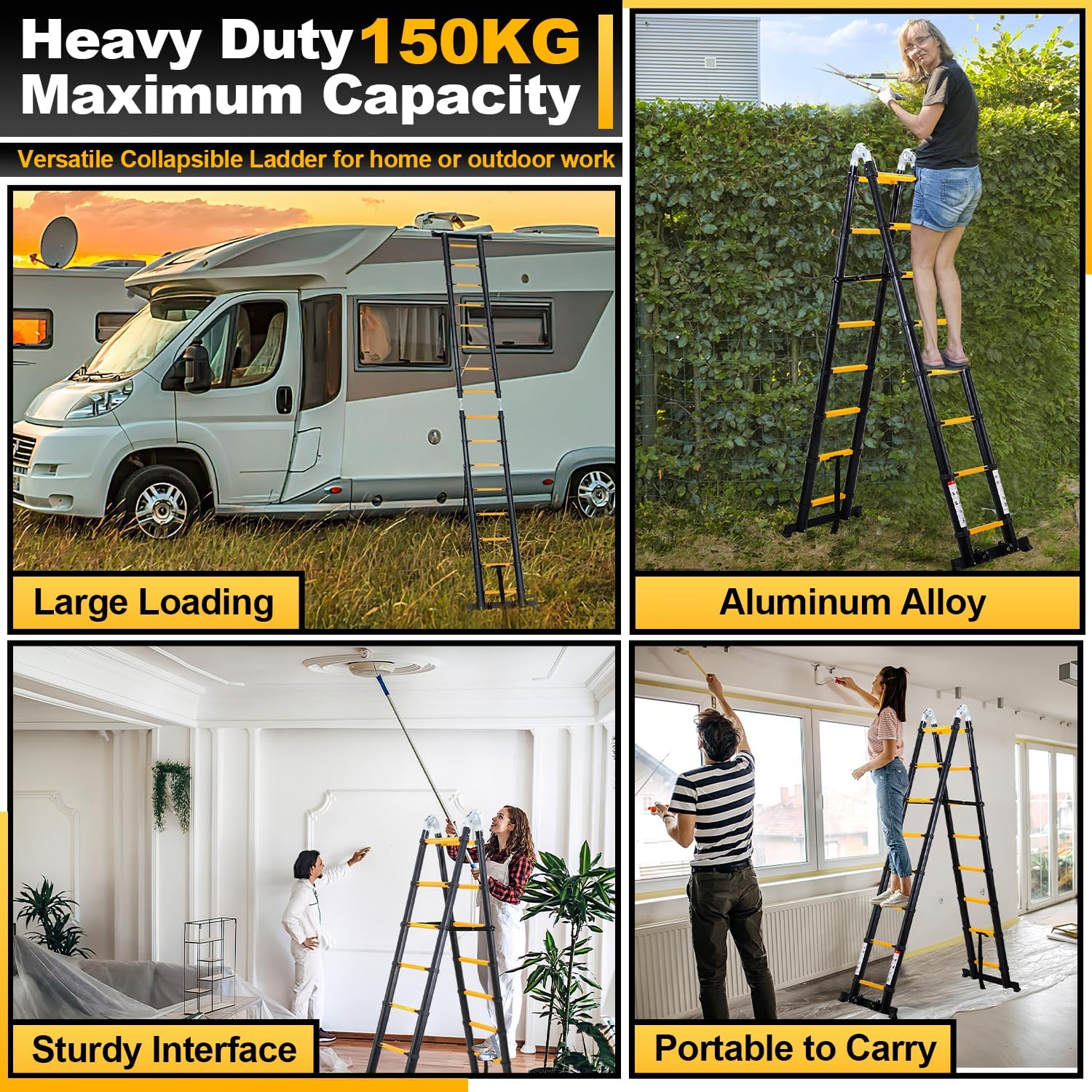 - 🧗Tragbar und flexibel: Die Teleskopleiter besteht aus einer leichten, aber hochwertigen Aluminiumlegierung und wiegt nur 13 kg. Die Schiebeleiter ist nach dem Klappen nur noch 0.88 M gross, höhenverstellbar bis 3,8 m. Es kann im Keller, im Dachboden