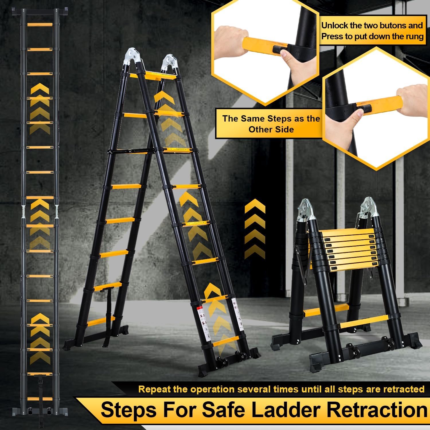 - 🧗Sicher und Zuverlässig: Zwischen den Sprossen ist Finger Sicherheitseinstellungen vorhanden, um das Einklemmen der Finger beim Ein- und Ausfahren zu verhindern. Eine gummierte rutschfeste Stufe und ein stossdämpfender Riemen zwischen den Sprossen