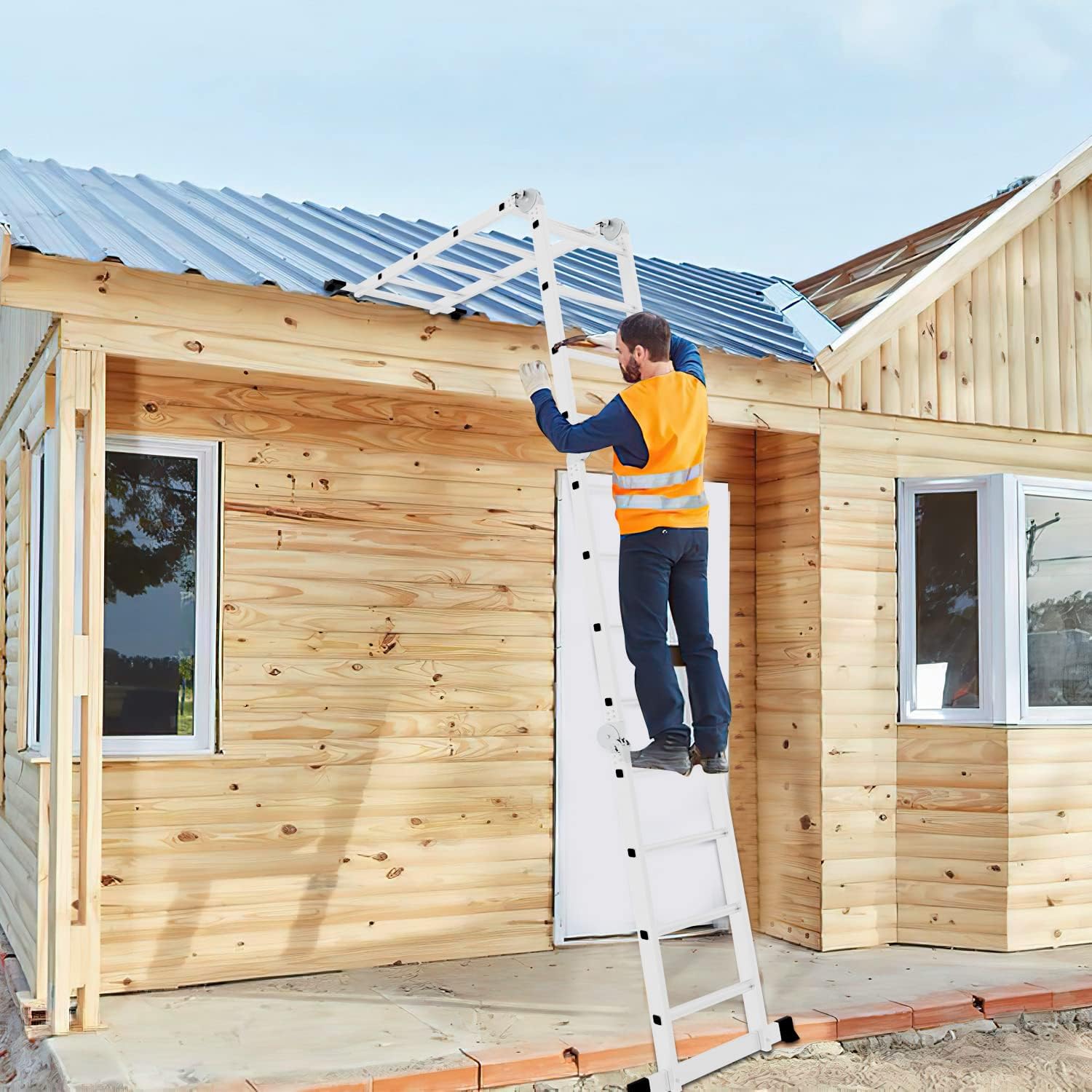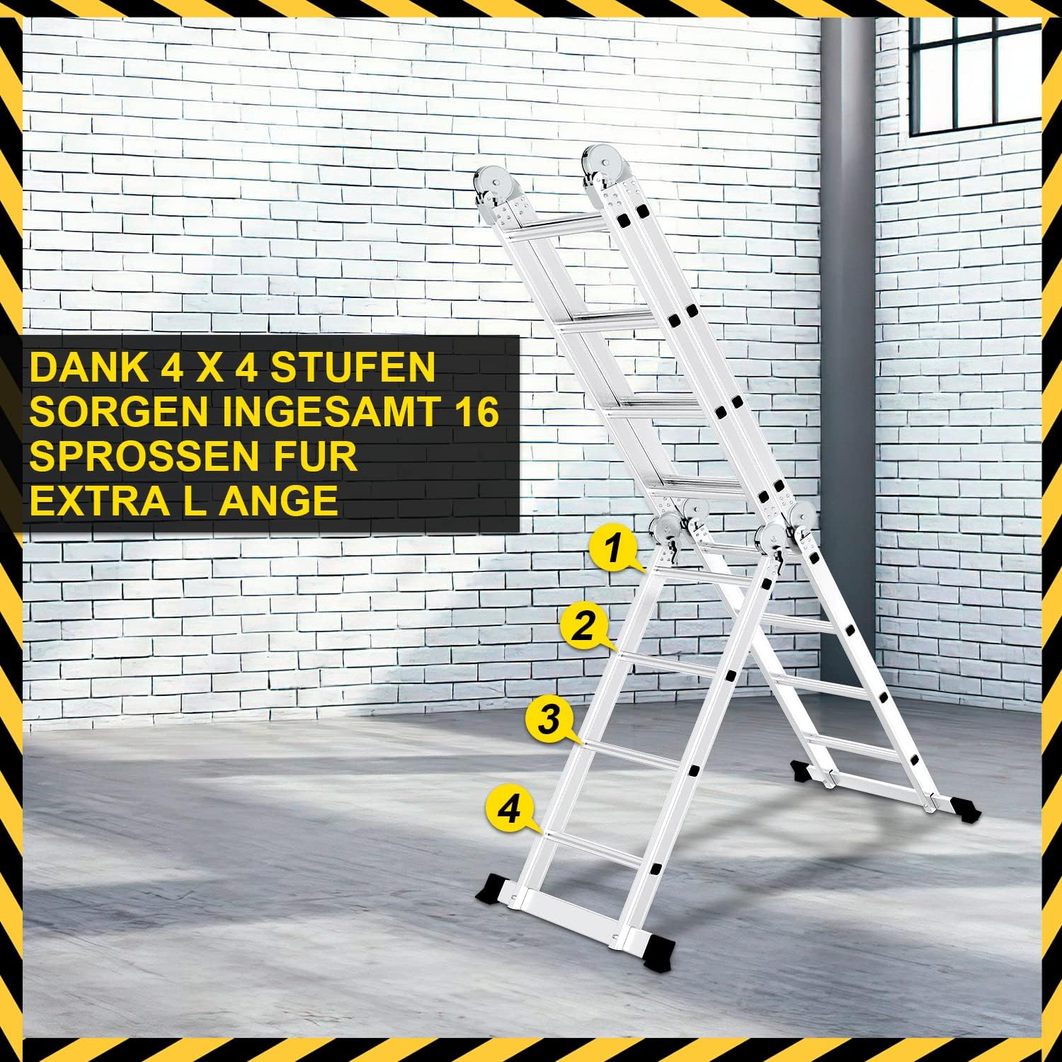 - đ„Sicherheitsverriegelung mit mehreren Positionen, konfigurieren Sie die Leiter nach Ihren WĂŒnschen. Kann als einzelne Leiter, doppelseitige Leiter, Bock, Arbeitsplattform, Treppenleiter etc. verwendet werden.