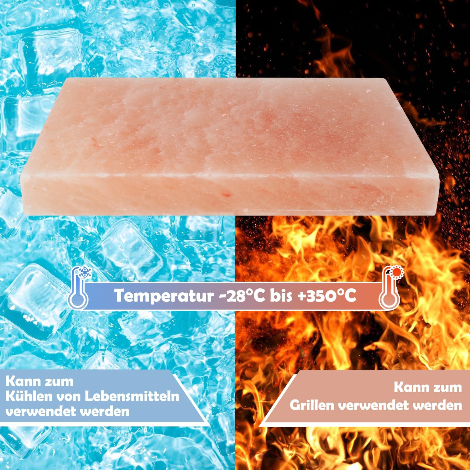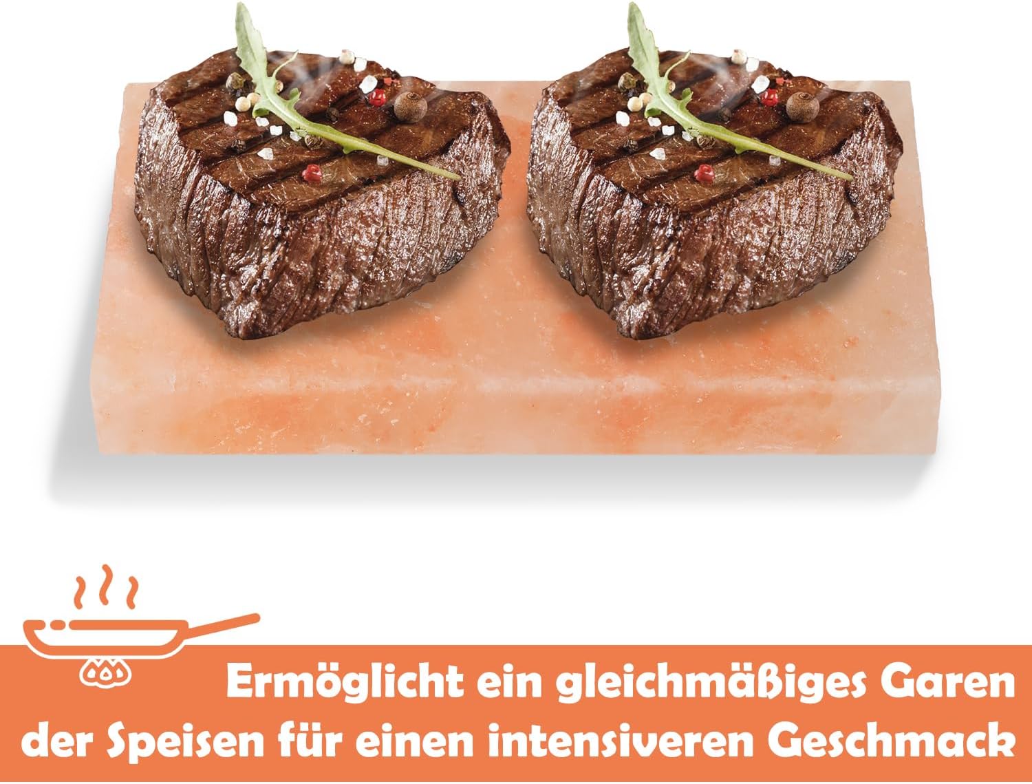 - 【Hohe Qualität】 Grösse beträgt 20*10*2,5cm, so dass das Essen gleichmässig gegart wird und der Geschmack intensiver wird. Sie können Fleisch, Fisch oder Gemüse auf dem Salzgrillstein grillen, um einen einzigartigen Geschmack zu erhalten.