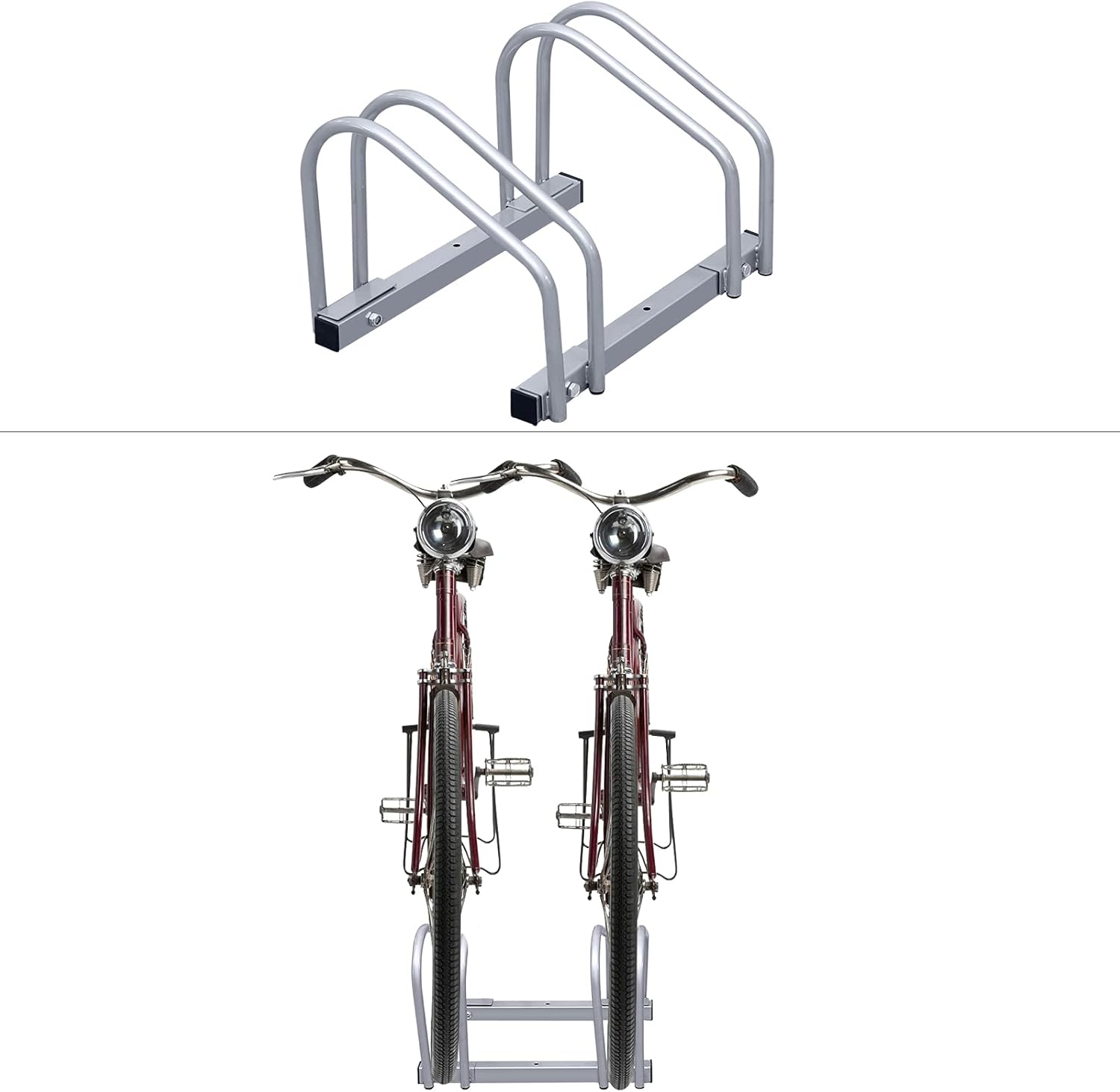 - 🚲【Robust und langlebig】Fahrradständer besteht aus 16 mm verzinktem Stahlrohr, das witterungsbeständig ist, und die Oberfläche ist silber pulverbeschichtet, was rostfrei ist und eine gewisse Menge an Kratzern aushält, perfekt für den Innen-