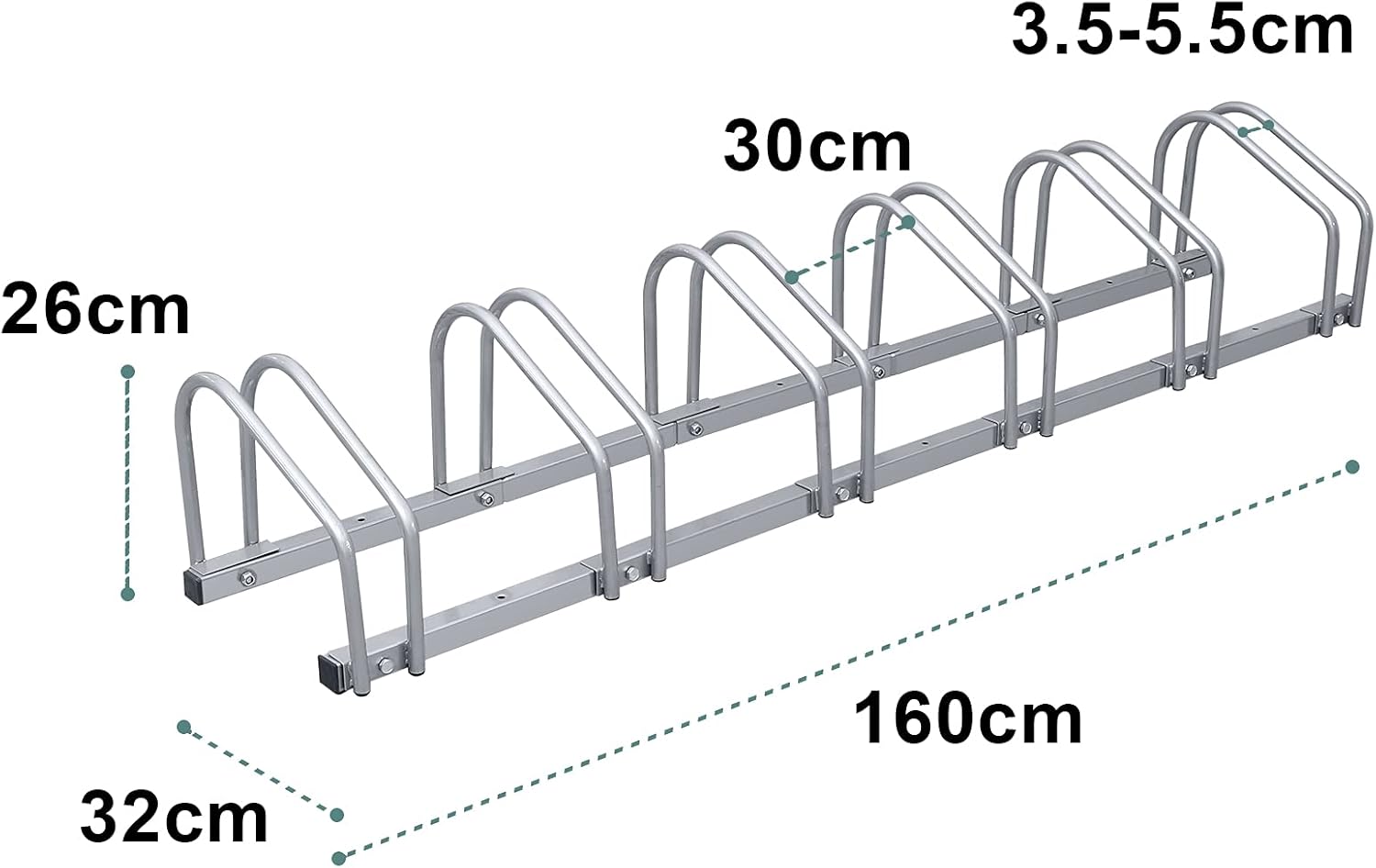 - 🚲【Masse】Fahrradständer für 6 Fahrräder, Abmessung HBT: 26x160x32 cm, Reifenbreite: 35-55mm, inkl. Befestigungsmaterial (Schrauben und Stifte).