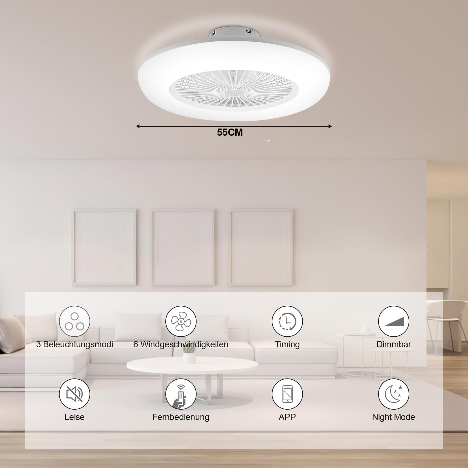 Variante: 55cm Smart Deckenventilator mit Beleuchtung.mit Fernbedienung und App 1X