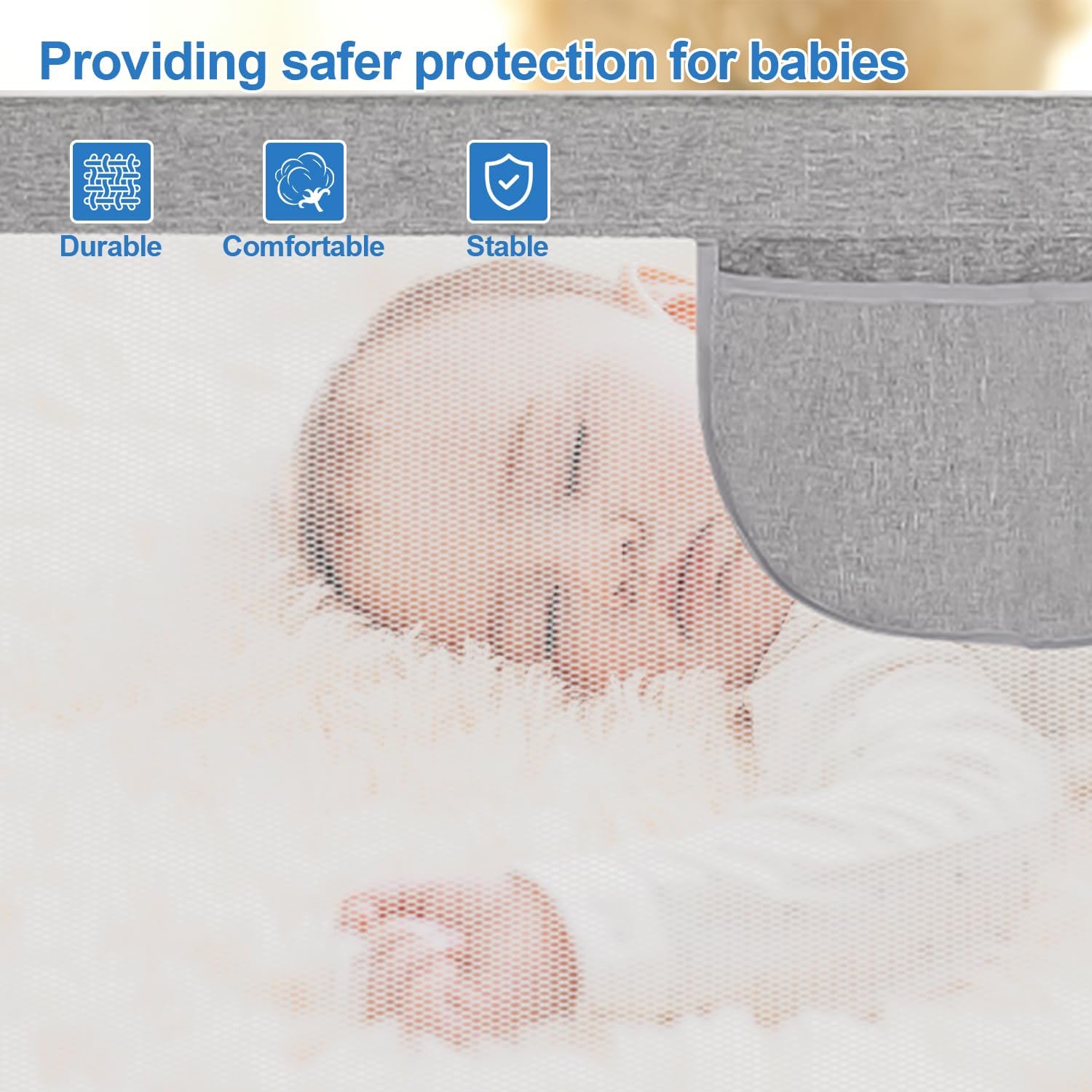 - 👶Verhindert Einklemmen und Erstickungsgefahr: Das Rausfallschutz bett Schienendesign gewährleistet eine nahtlose Verbindung und verhindert das Einklemmen von Babys Kopf oder Gliedmassen. Die Stoffhülle des Rausfallschutz Bett aus atmungsaktivem