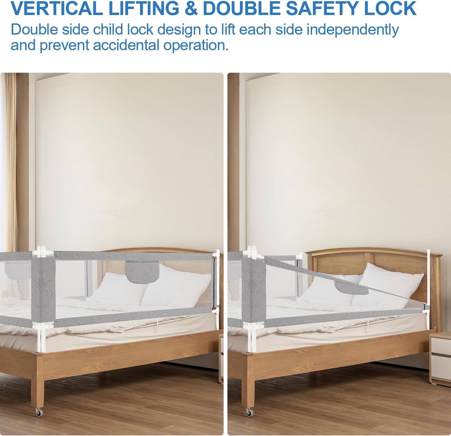 - 👶Einseitige Höhenverstellung und einfache Bedienung: Neben der Gesamthöhenverstellung kann das Bettschutzgitter auch einseitig flexibel angehoben oder abgesenkt werden. Sie können das Gitter auf einer Seite senken, um leicht ins Bett zu gelangen