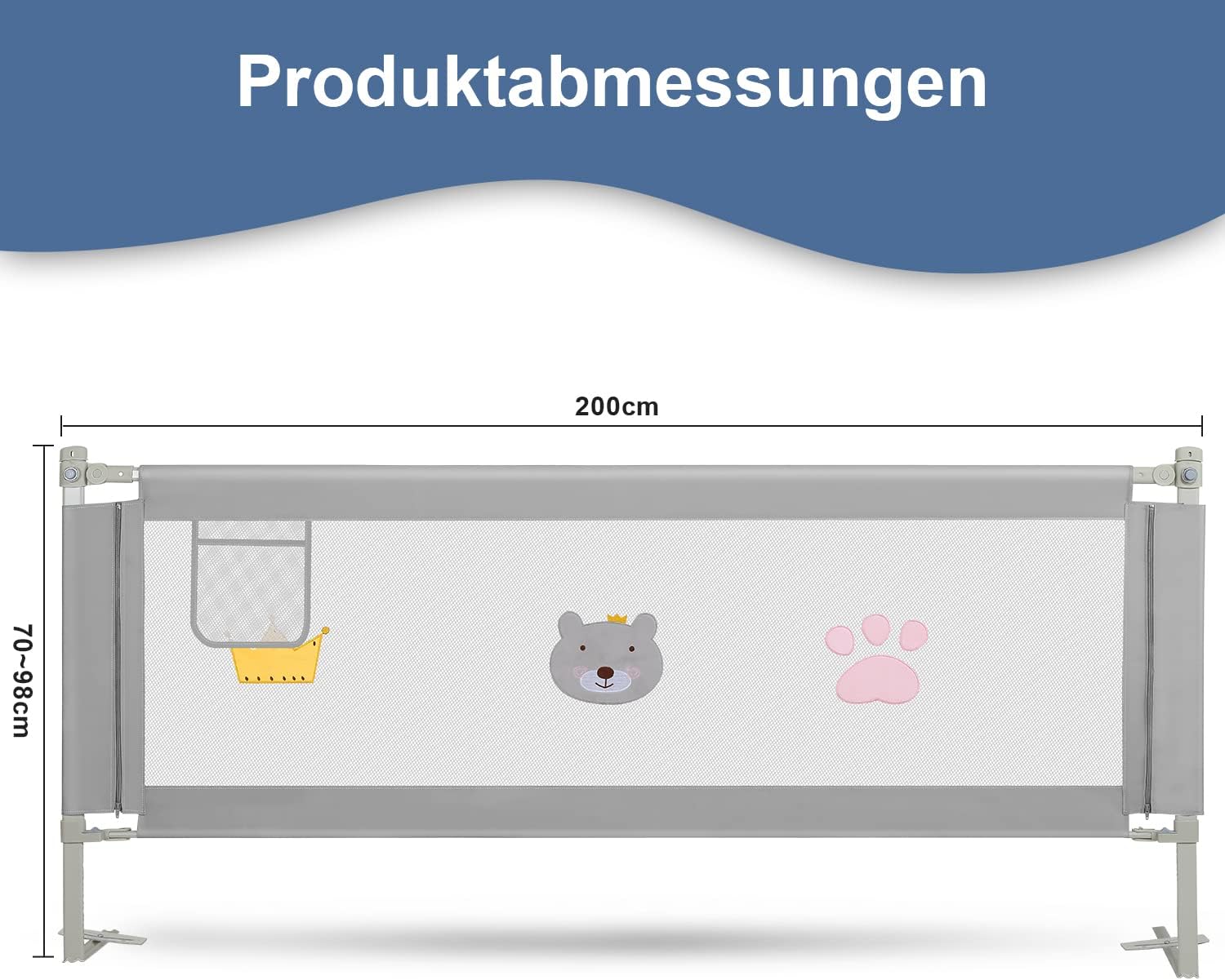 - 【Schützen das Baby】Der Bettgitter ist in 28 Positionen von 70 cm bis 98 cm höhenverstellbar und kann zusätzlich zur Gesamthöhe flexibel auf einer Seite angehoben werden. Sie können die Höhe frei an die Dicke der Matratze anpassen, um Ihr Baby