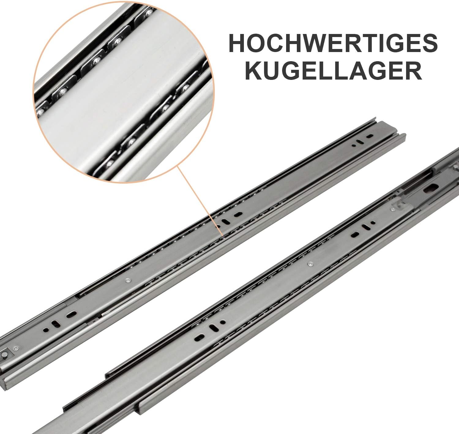 - Die Soft-Close-Funktion mit einer Tragkraft von 45 kg und die Verwendung Hochwertiger Materialien garantieren perfekte Laufeigenschaften und hohe Stabilität der teleskopschienen. Die Kugellager-Gleitschiene oberfläche ist verzinkt, was nicht leicht zu