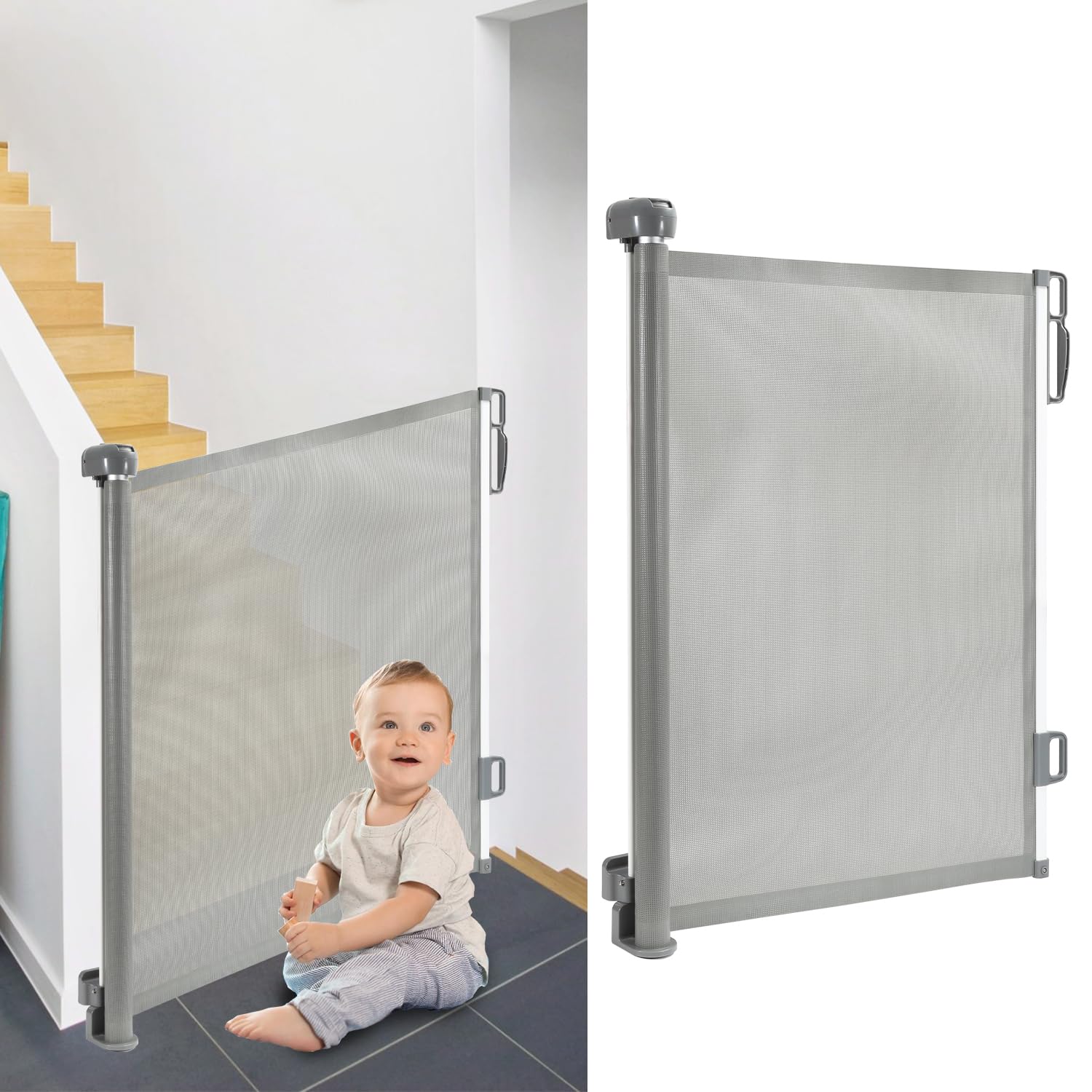 - 📍Platzsparende Flexibilität:Platzsparende Flexibilität: Unser einziehbares Sicherheitsgitter zieht sich vollständig zurück, wenn es nicht gebraucht wird, und spart so wertvollen Platz. Ausgeklappte Grösse: 86cm (H) x 180cm (L). Ideal für Eltern