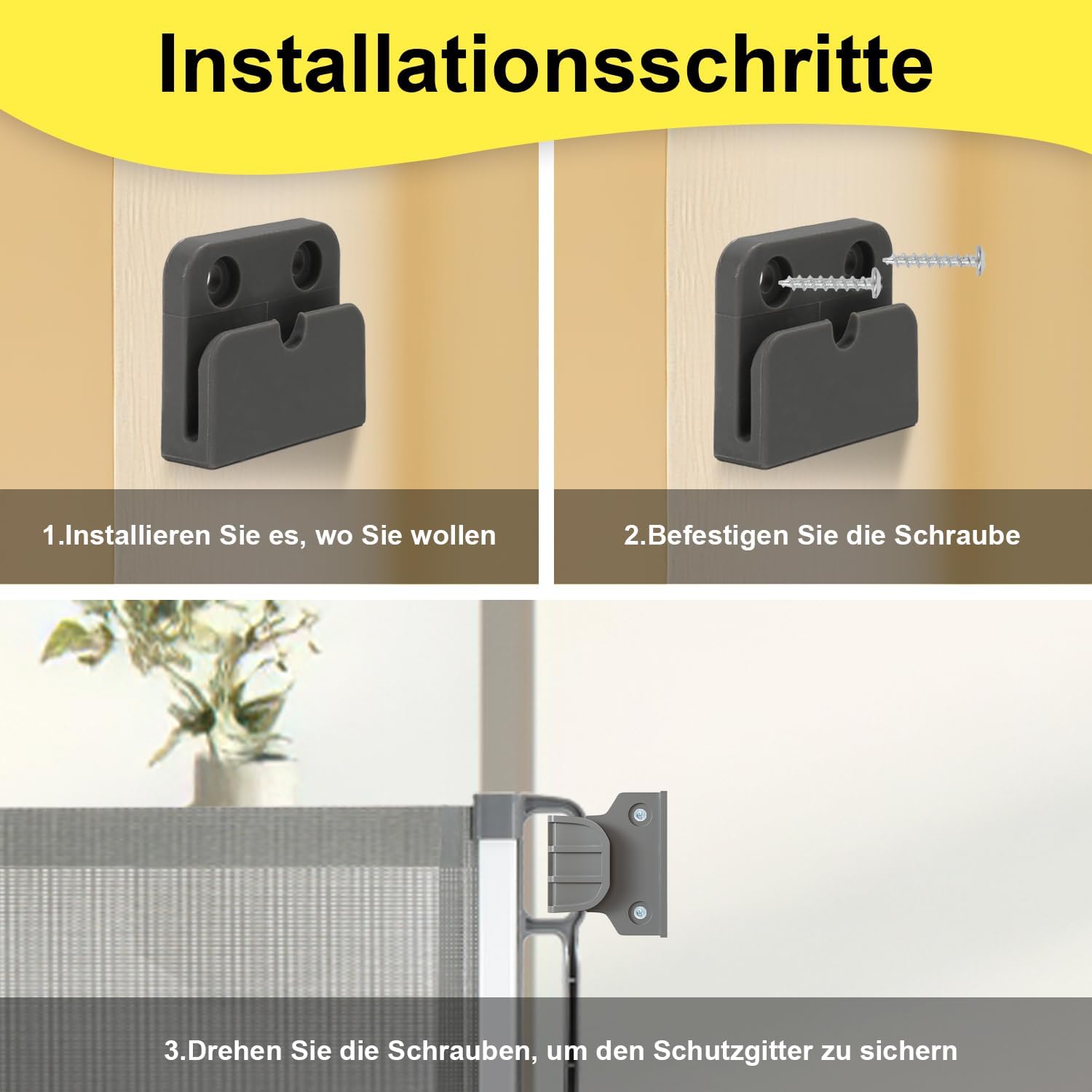 - 📍Schutz durch PVC-Netz und Doppelverriegelung:Die Barriere besteht aus weichem PVC-Netz, das Babys und Kleinkinder vor Stössen und Verletzungen schützt. Mit einer doppelten Verriegelung wird sichergestellt, dass die Tür nicht versehentlich
