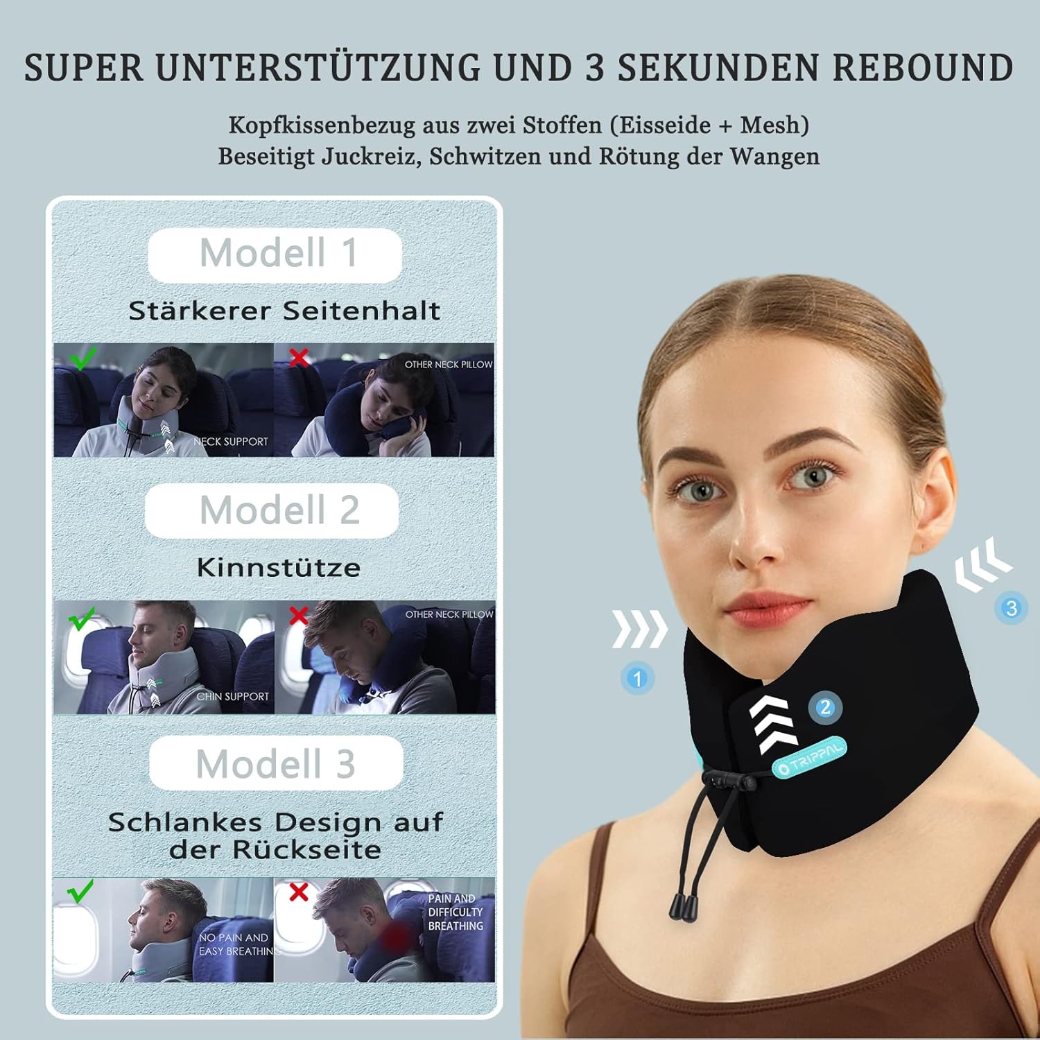 - [VERSTELLBARES FLUGZEUG-REISEKISSEN]:Wählen Sie die richtige Grösse entsprechend Ihrem Nackenumfang und passen Sie das Kissen mit der Verstellschnalle an, um den optimalen Halt und Komfort zu gewährleisten. Bitte achten Sie darauf, dass das mit