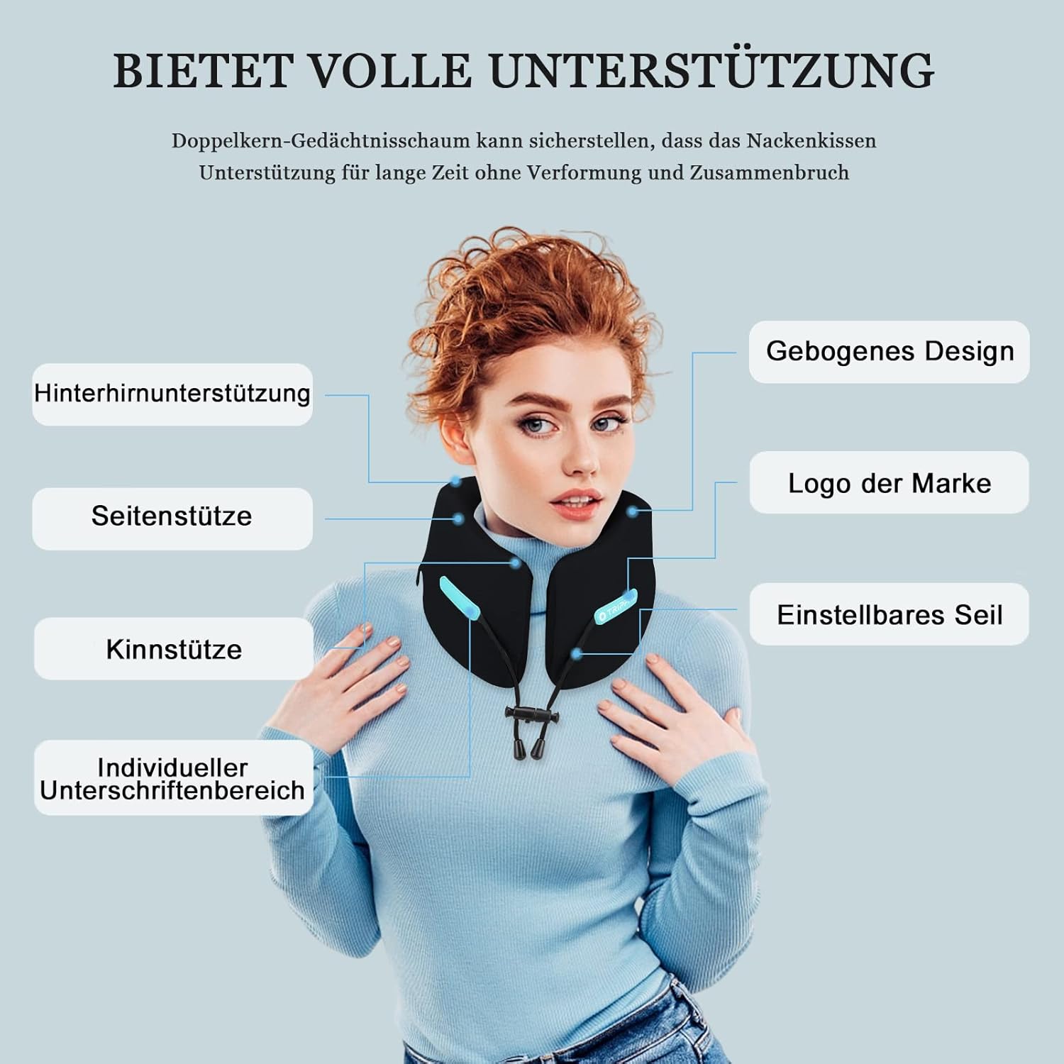 - [GUT ATMUNGSAKTIV]: Das Nackenkissen verfügt über einen hochwertigen Bezug mit einer Memory-Foam-Kisseneinlage und ist mit luftleitenden Schlitzen versehen, um Juckreiz, Schwitzen und rote Wangen unterwegs zu verhindern. Der glatte und weiche