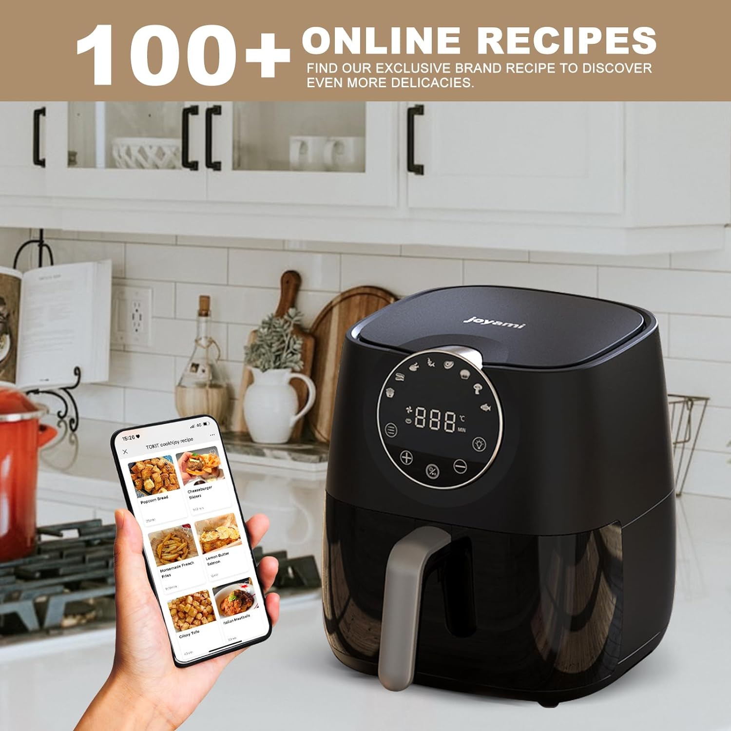 joyami Heissluftfritteuse 5,7L XXL mit Touch-Screen-Steuerung, Ohne Öl, Transparentes Fenster Heissl