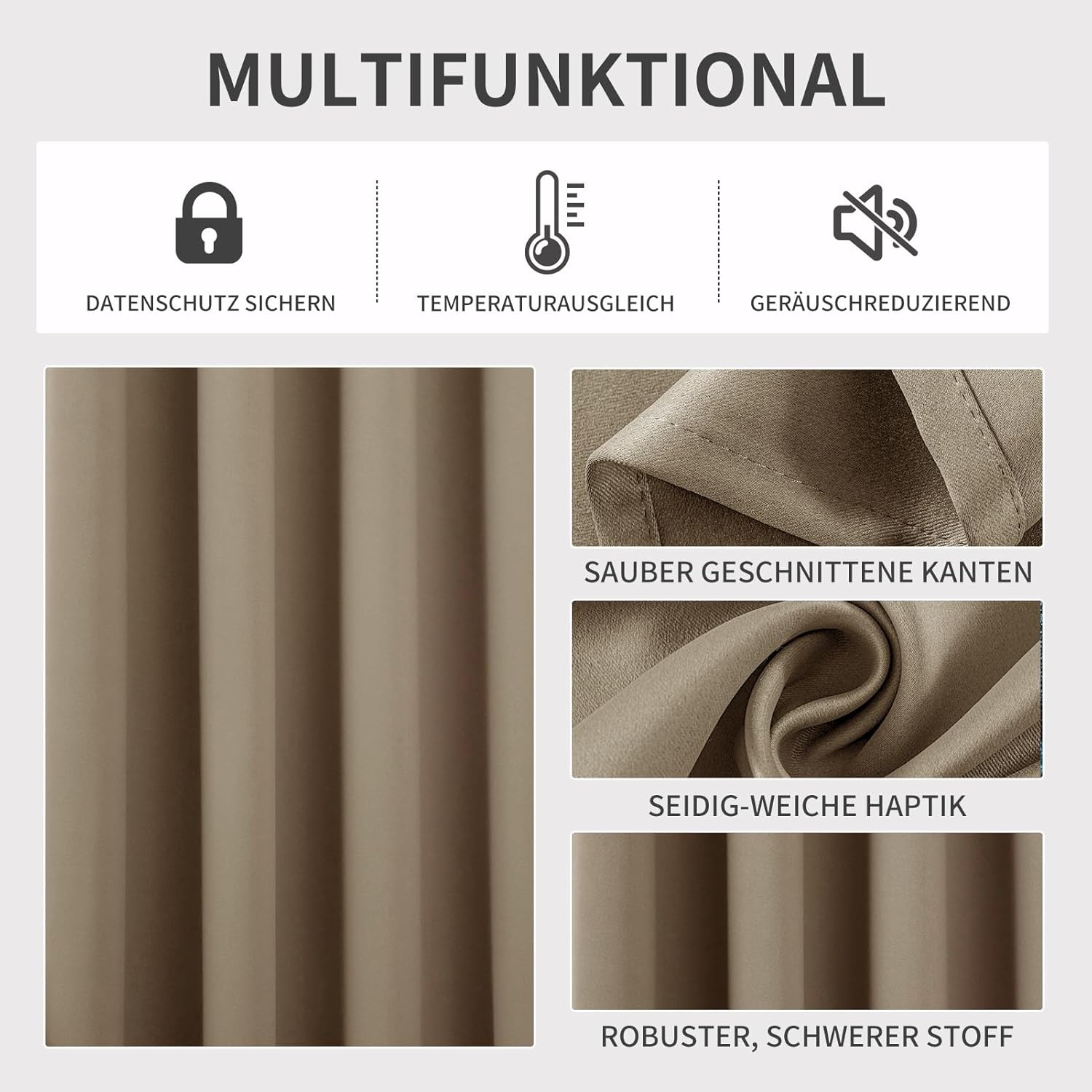 Joydeco Blickdichte Vorhänge mit Ösen Gardinen 2 Stück H 175 x B 140 Verdunkelungsvorhang Cappuccino