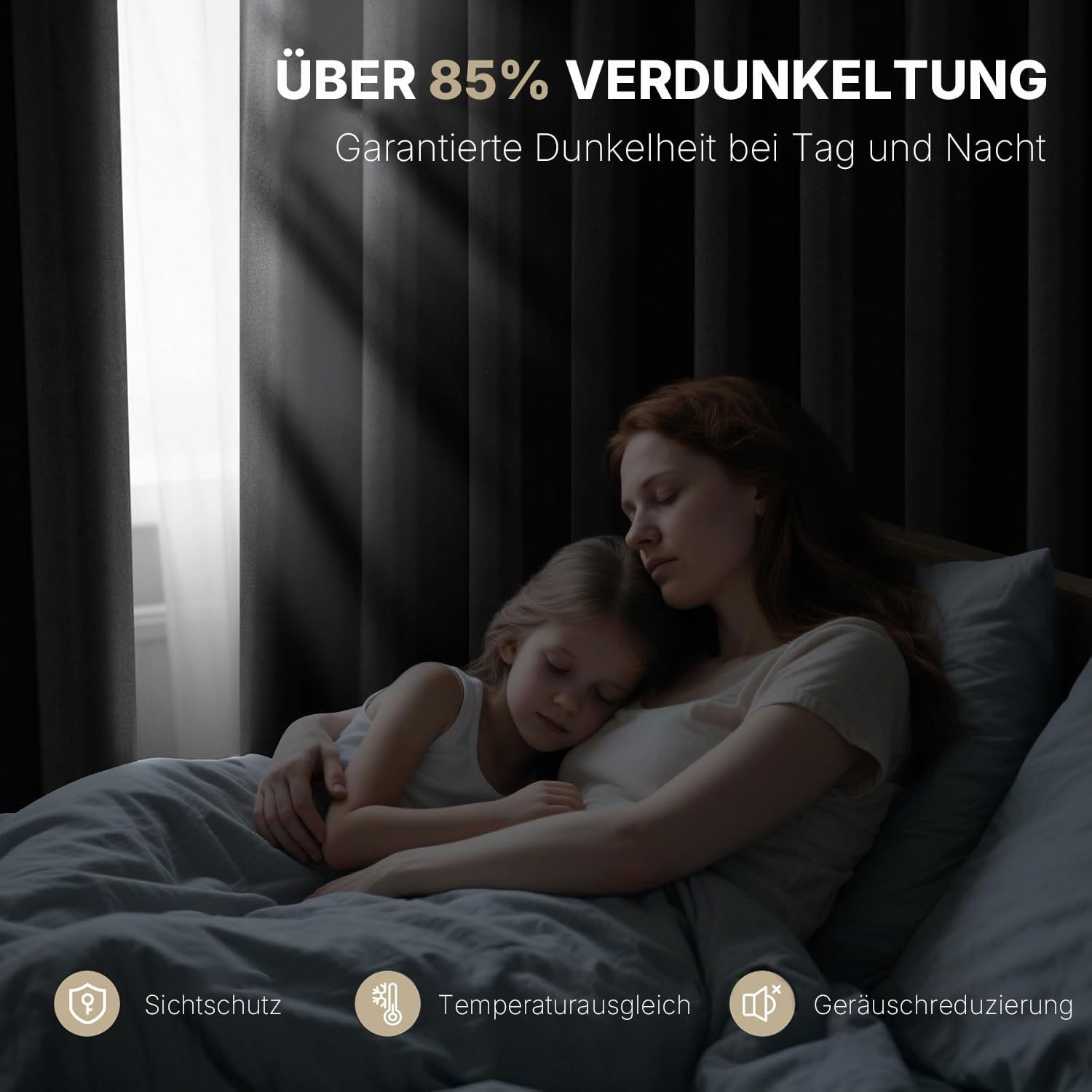- [SONNENBLOCKIERUNG UND WÄRMEDÄMMUNG]: Unsere Joydeco Vorhänge für das Wohnzimmer können 85%-99% des Sonnenlichts und schädlicher UV-Strahlen blockieren (dunkle Farben wirken besser), um den Raum kühler zu halten und Hitze im Sommer abzuwehren.
