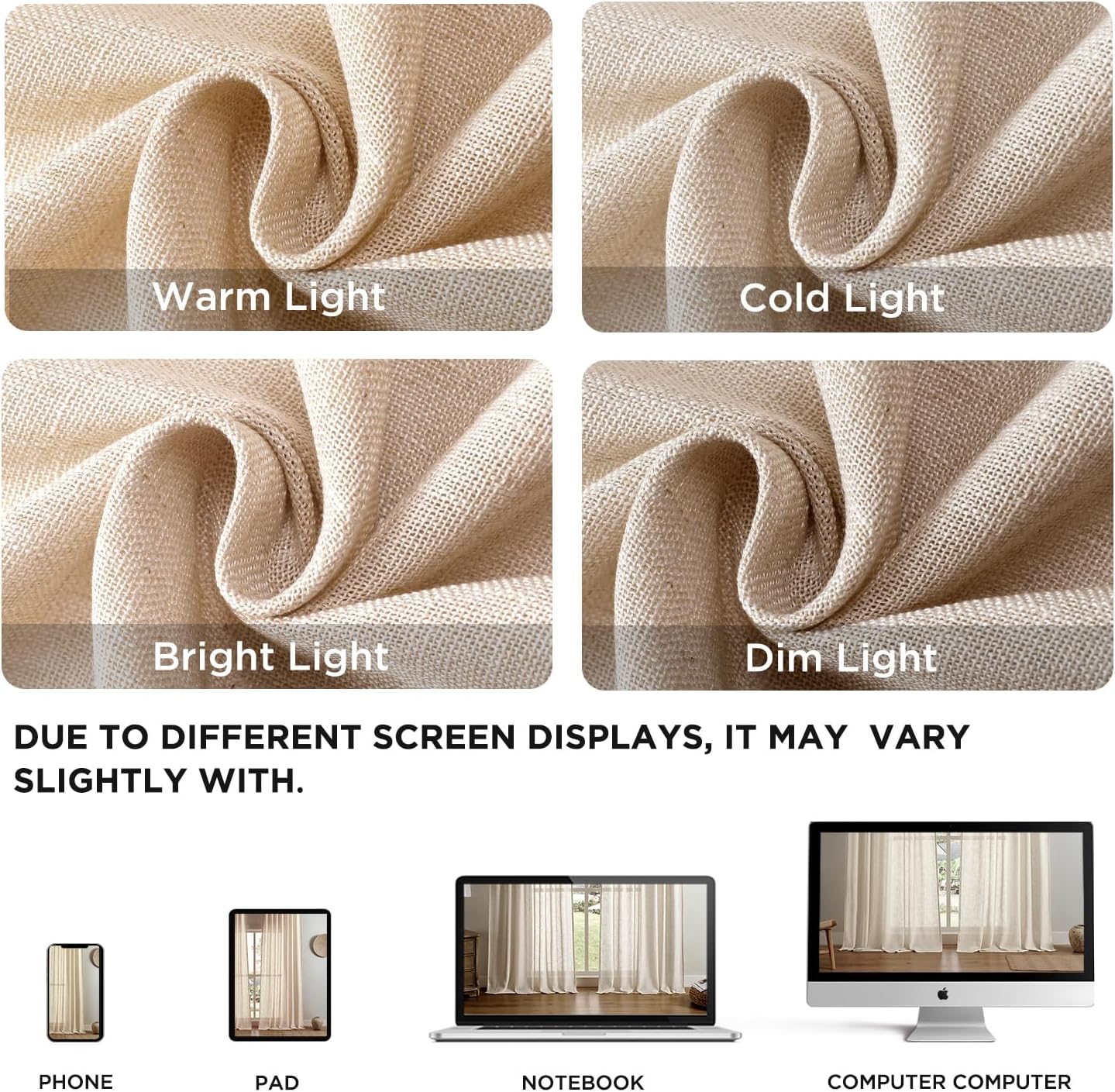 - BEIGE VORHÄNGE FÜR WOHNZIMMER - Das klare, saubere Aussehen von beigefarbenen Vorhängen ist immer im Stil, und diese Leinenvorhänge sind keine Ausnahme. Das Beige verleiht Helligkeit und reflektiert das Sonnenlicht, sodass sich Ihr Raum offen und