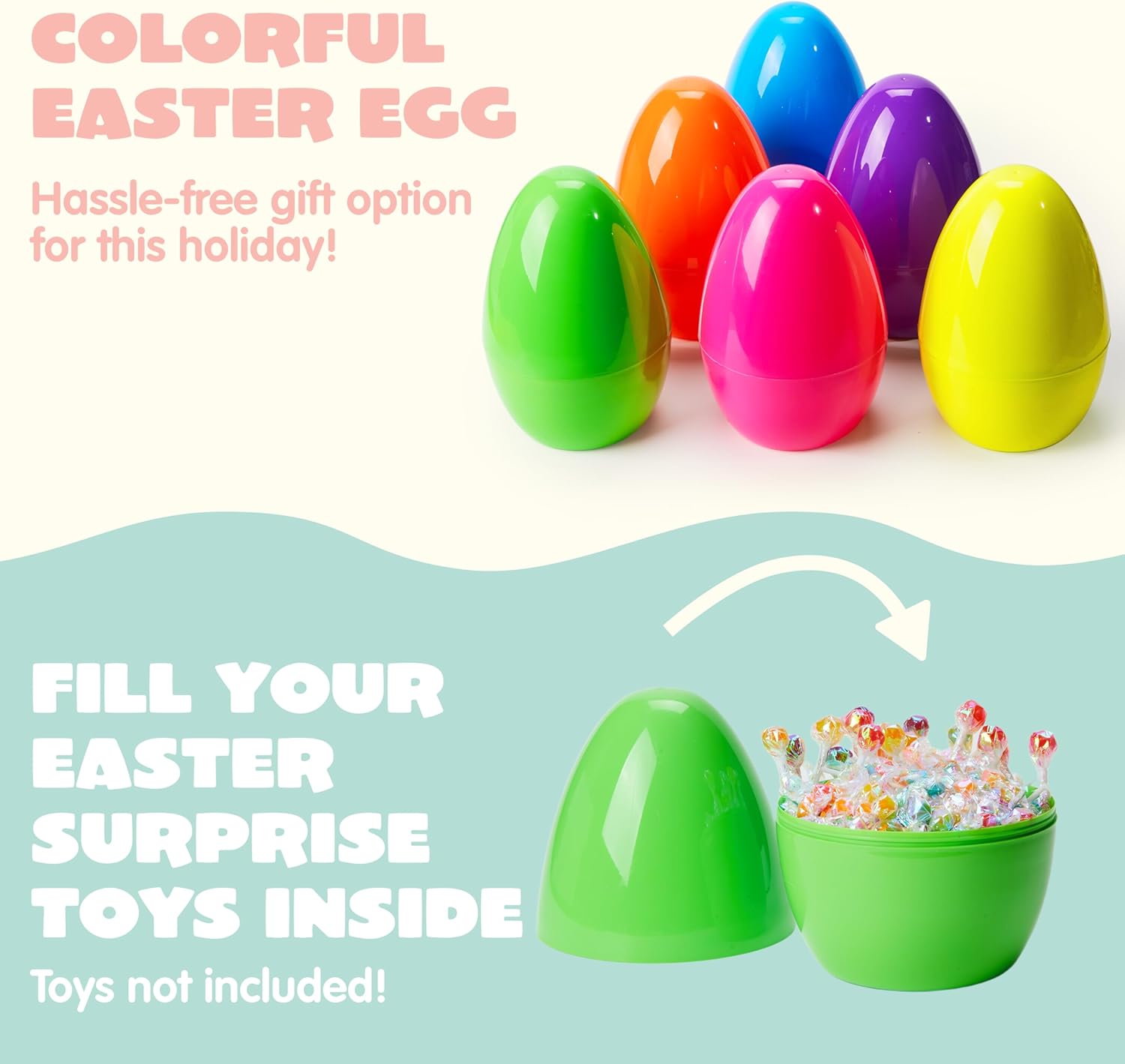 JOYIN 6 Stück 25,4 cm grosse Jumbo-Ostereier aus Kunststoff, hell, solide, Befüllen von Leckereien,