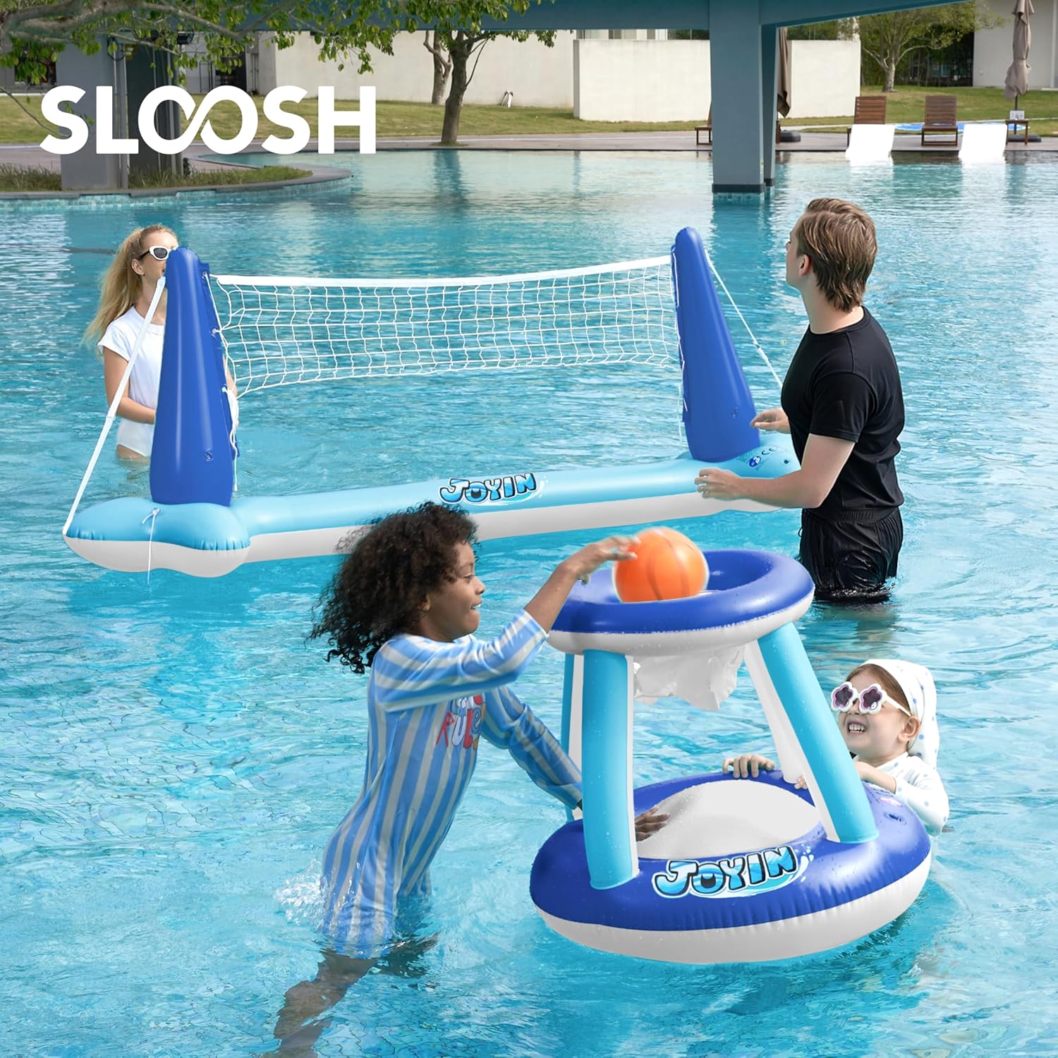 - SUPER WERT. Unser Sommerspielzeugset enthält einen aufblasbaren Volleyballplatz mit 2 Gewichtssäcken, einen aufblasbaren Basketballkorb, einen aufblasbaren Volleyball und 2 Bälle für Basketball und Volleyball. Das Volleyballfeld hat die Masse 267cm x