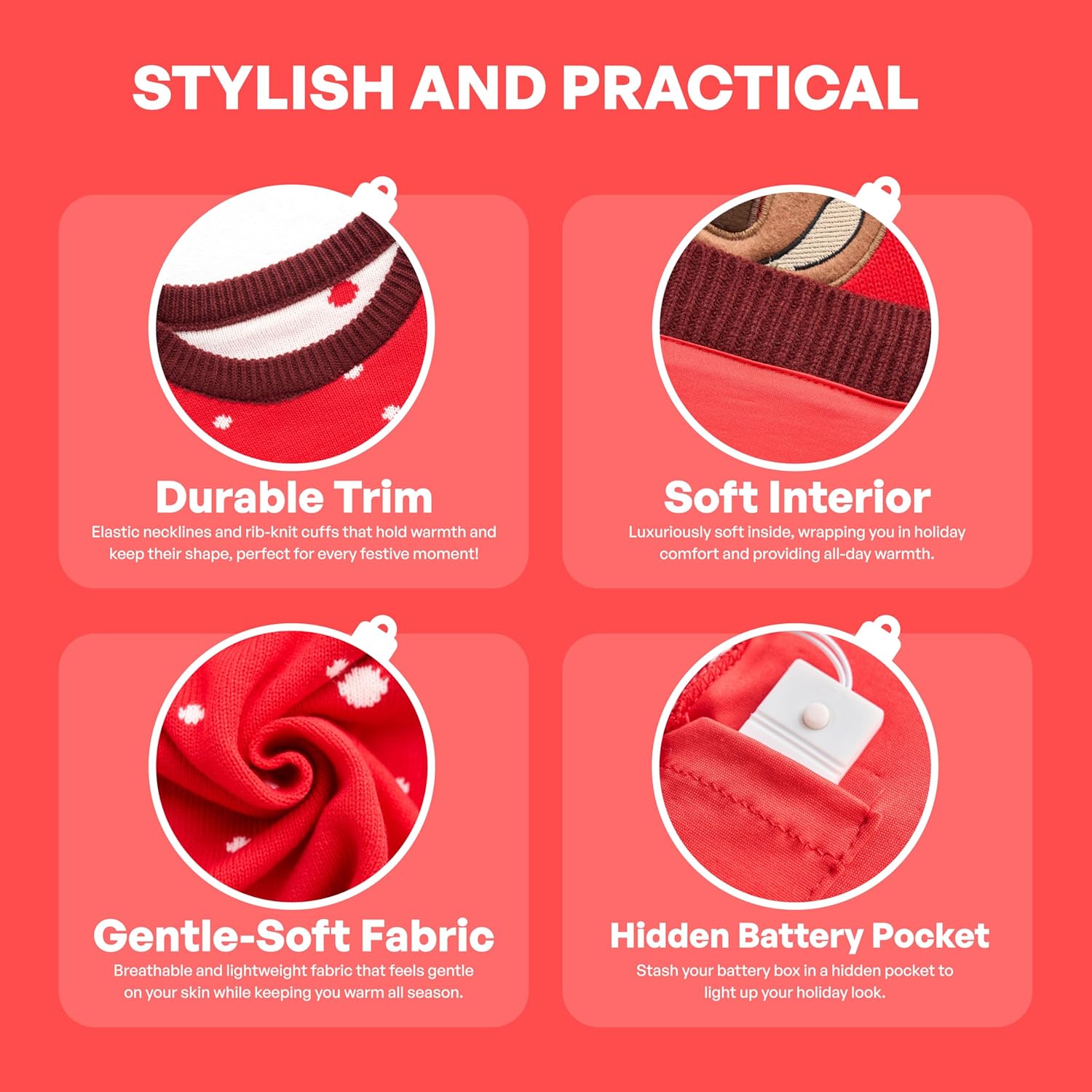 - SUPER VALUE PACK. Unser lustiger Rentier-Weihnachtsbaum-Pullover hat 6 verschiedene Lichtmodi, um Leben und den Geist von Weihnachten zu Ihrer Winterurlaubsparty zu bringen!