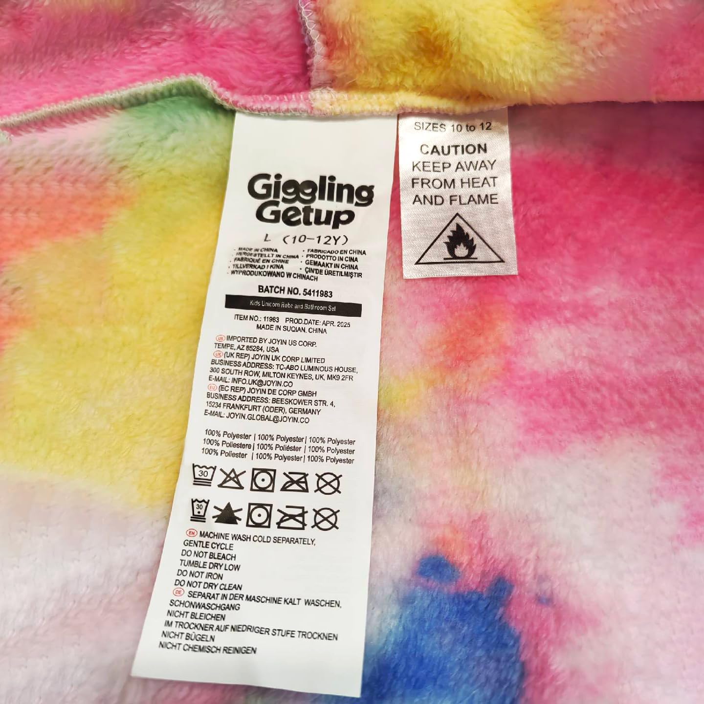 - Vorteilspackung. Unser Einhorn-Bademantel enthält 1 Einhorn-Bademantel mit Kapuze + 1 Einhorn-Augenbinde + 1 Kosmetiktasche (Tasche) + 1 Paar Hausschuhe + 1 Einhorn-Stirnband. Kindergrösse (für Mädchen): 3T, S (5-7), M (8-10), L (10-12).
