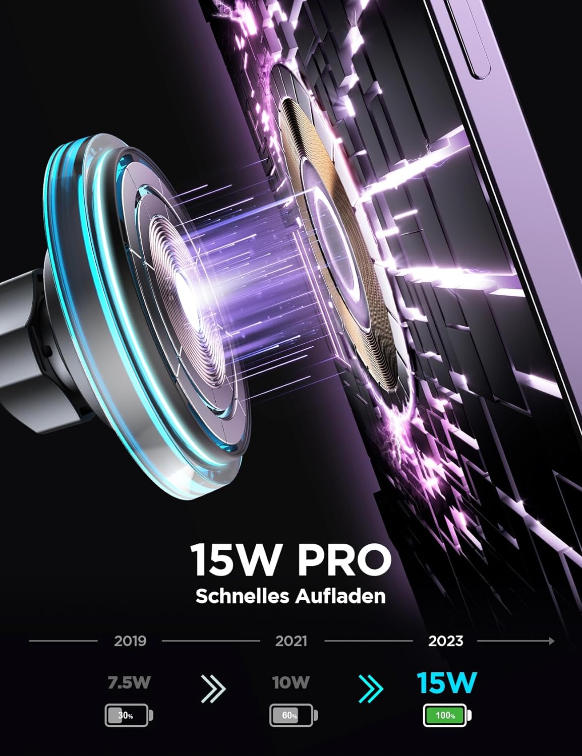 • ⚡【15W volles Schnellladen】 Entwickelt für magsafe, ermöglicht für magsafe ladegerät auto eine Aufladung mit maximal 15 W. Entsaften Sie das iPhone 15 in 25 Minuten um 30 %. Der integrierte Smart-Chip unterstützt ein intelligentes