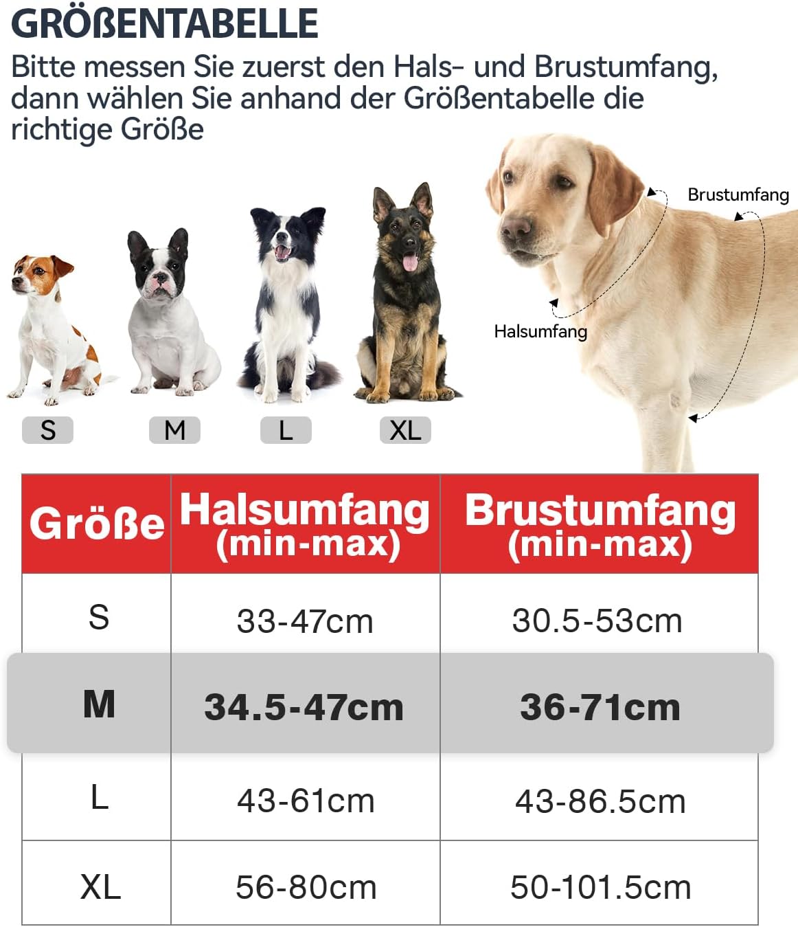 • EMPFOHLENE RASSEN - Mittelgrosse Hunde - Brustumfang: 31 - 72cm / Halsumfang: 29 - 47cm, wie Französische Bulldogge, Beagle, Boston Terrier, Scottish Terrier, Border Collie, Dackel, Heeler. Sie können es mit der Joytale Leine für eine bessere