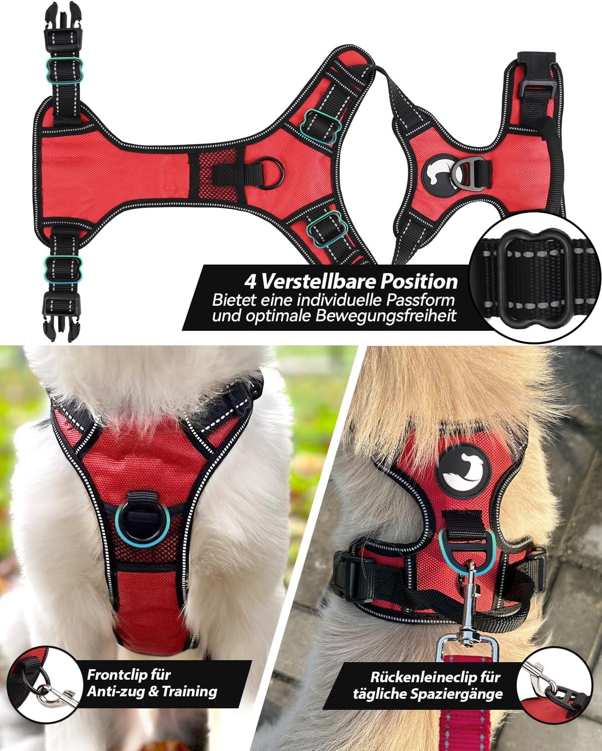 • EINFACH ZU BENUTZEN & EINSTELLEN - Ideal für wachsende und gemischte Rassen. Einfaches An- und Ablegen des Hundegeschirrs in Sekundenschnelle mit 2 Schnellverschlussschnallen ohne Probleme. 4 Einstellpunkte (2 Schulter & 2 Brust) ermöglichen eine