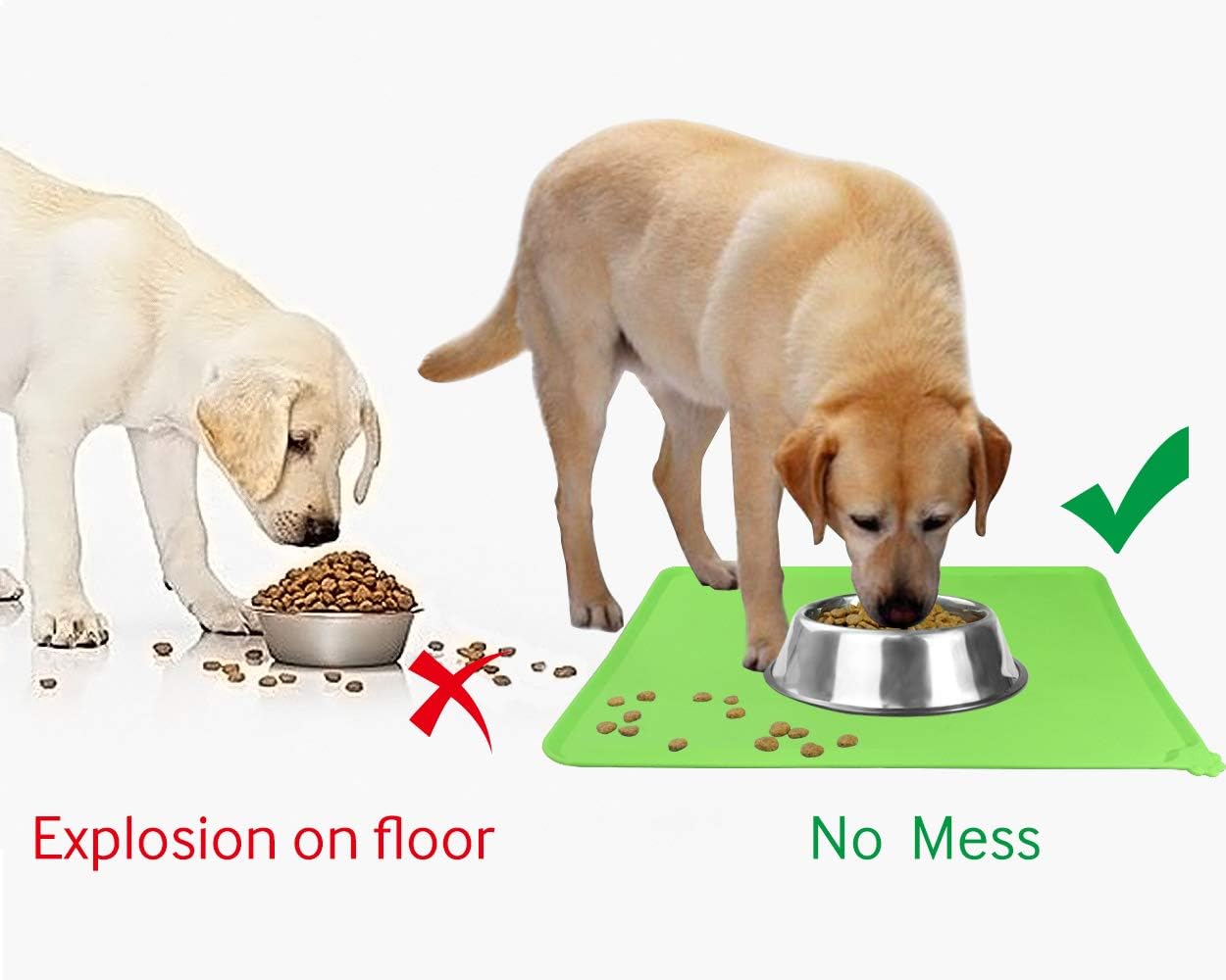 - HALTEN SIE DEN BODEN SAUBER: Die grosse Fütterungsmatte mit erhöhten Kanten verhindert, dass Futter, Wasser und Leckereien auf den Boden gelangen.