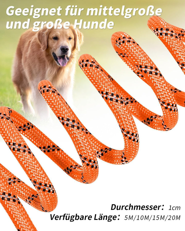 - PREMUIM KLETTERSEIL - Diese lange Leine für das Hundetraining ist aus einem robusten Kletterseil gefertigt. Dieses Material ist stark und abriebfest, so dass es ein ausgezeichnetes Material für die Ausbildung Leine für Hunde, die ziehen