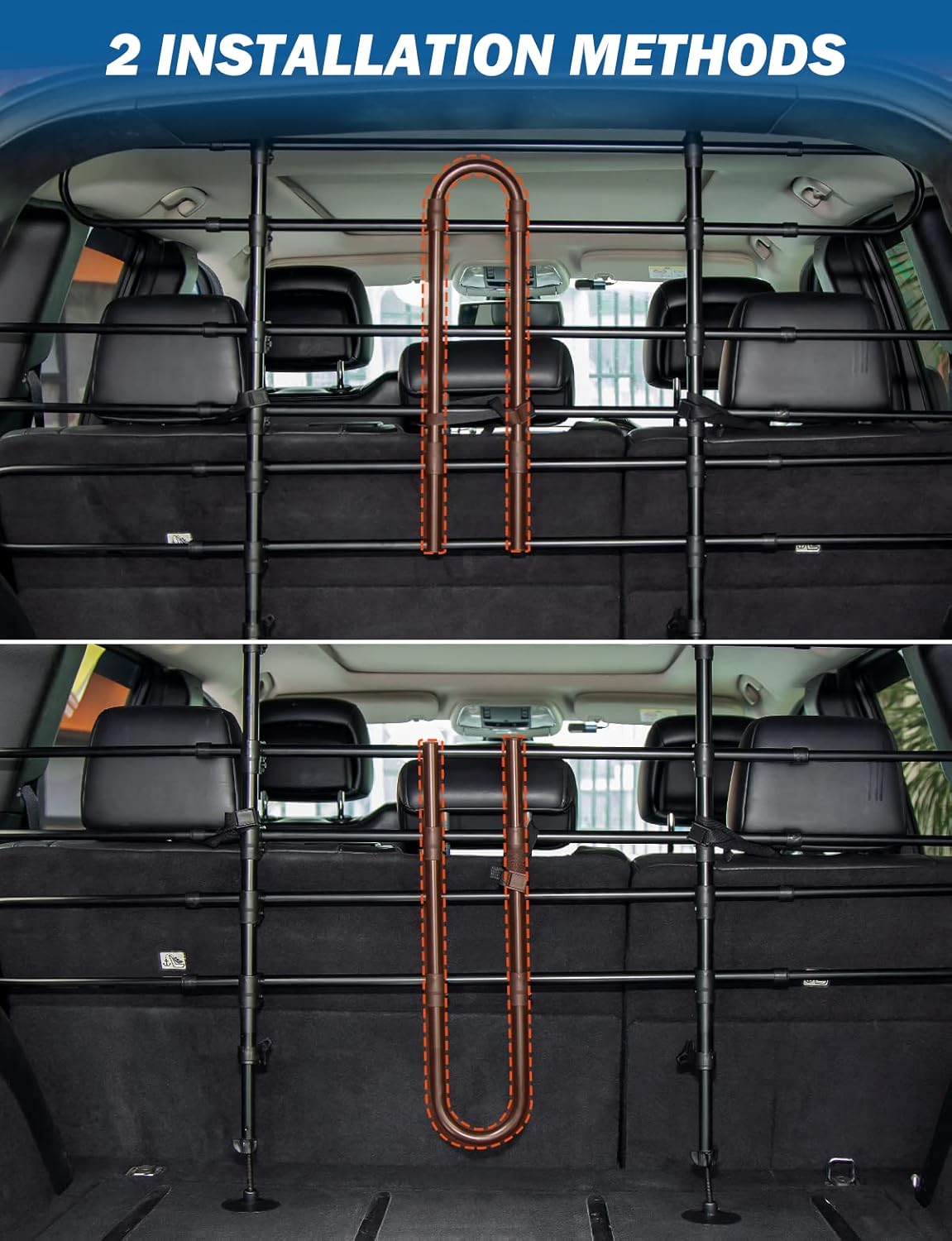 • 🚗EINFACH ZU MONTIEREN: Es braucht kein Bohren, und kann kein Werkzeug installiert werden. Der Trenngitter wird über eine robuste Konstruktion befestigt. Befestigen Sie einfach die beiden Seiten an der Ober- und Unterseite. Sie können auch die