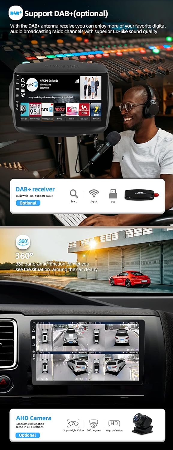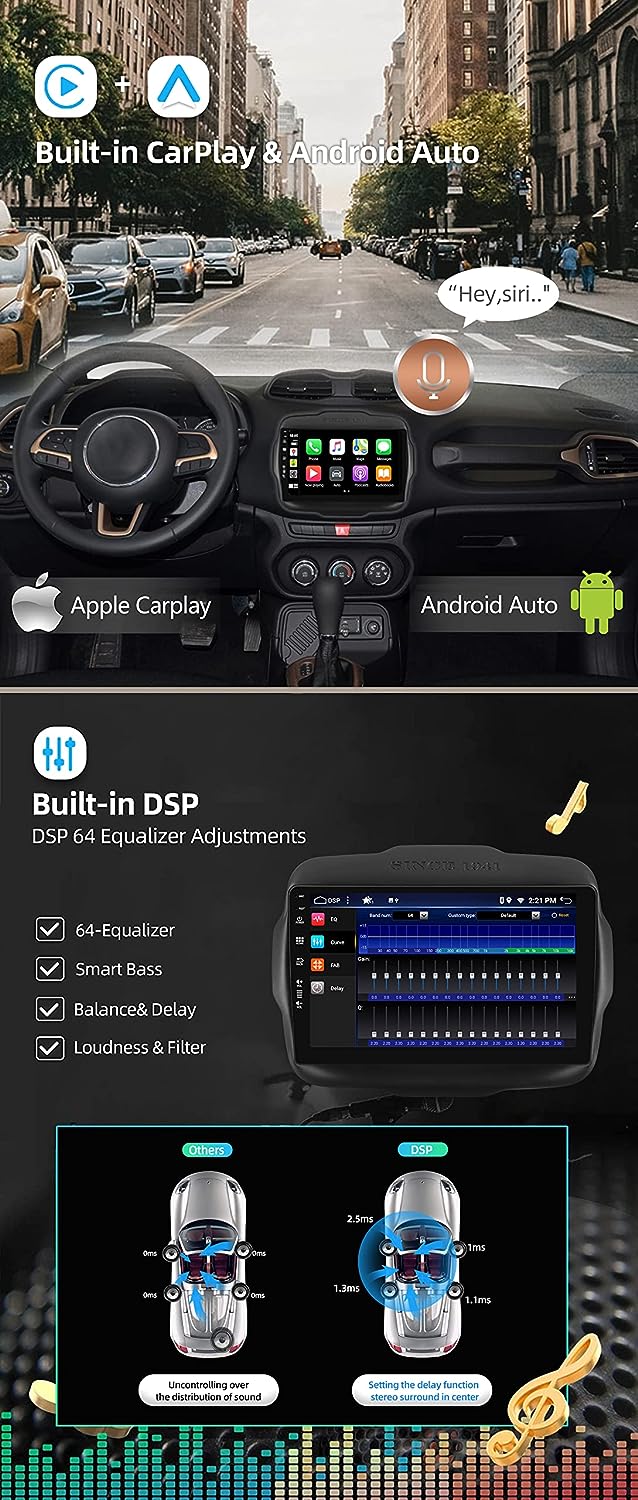 - 【DSP - CARPLAY - ANDROID AUTO】 DSP verfügt über einen vollständig digitalen Prozessorchip und einen 64-Bit-Doppelpräzisionsmodus. Geniessen Sie je nach Bedarf VIP-Soundeffekte an verschiedenen Orten. Integriertes drahtloses Carplay und Android